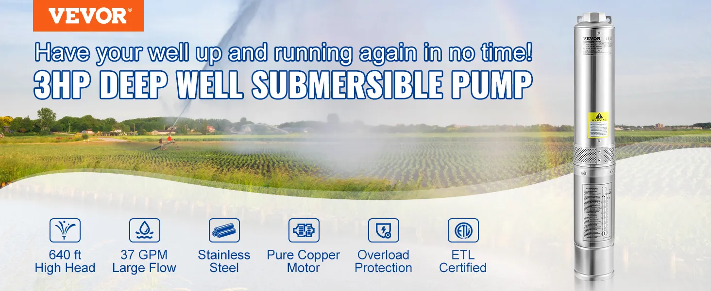 - ¿Está preocupado por el suministro de agua para su familia o tierras de cultivo? Bueno, ¡prepárese para tener su pozo en funcionamiento nuevamente en poco tiempo! Nuestra bomba sumergible para pozos profundos le brinda una gran tasa de flujo, produciendo un flujo constante hasta bastante profundidad debajo de la superficie. La construcción de acero inoxidable de primera calidad hace que esta bomba para pozos profundos mantenga un rendimiento excelente durante años. Bombéelo hoy y comience a vivir la vida al máximo con nuestra bomba de pozo sumergible. No dudes en hacerte con uno!!!