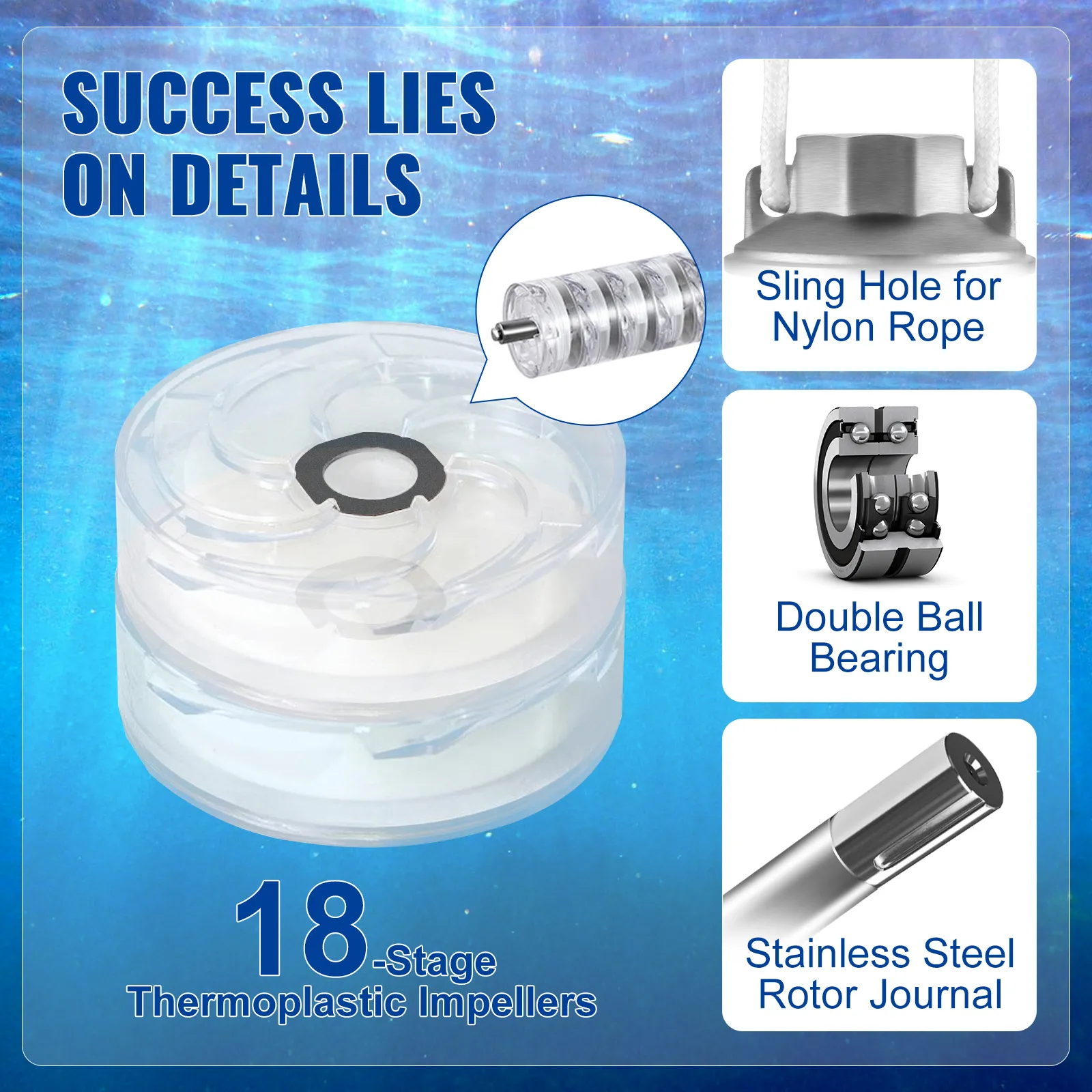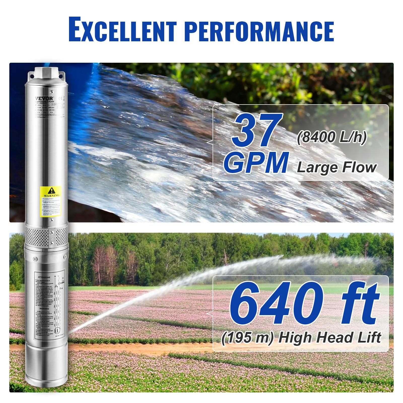 Esta bomba de pozo sumergible de 3 HP cuenta con un gran flujo de 37 GPM y una altura de elevación de 640 pies, lo que satisface todas sus necesidades de agua. La malla de filtración múltiple garantiza un agua cristalina.