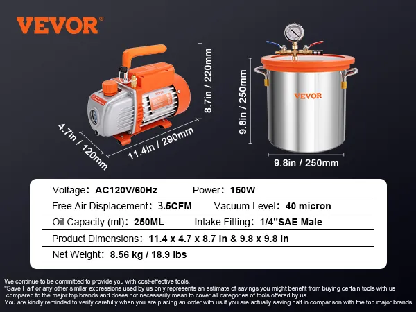 El kit de bomba y cámara de vacío VEVOR cuenta con una cámara de vacío de gran capacidad y puede desgasificar elementos y aumentar los niveles de vacío. Ideal para operaciones de desgasificación, encapsulación al vacío, pruebas biológicas, etc. Adecuado para estabilización de madera, desgasificación de resina y construcción de modelos de bricolaje.