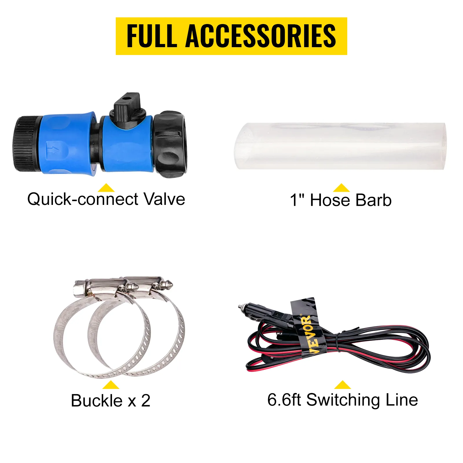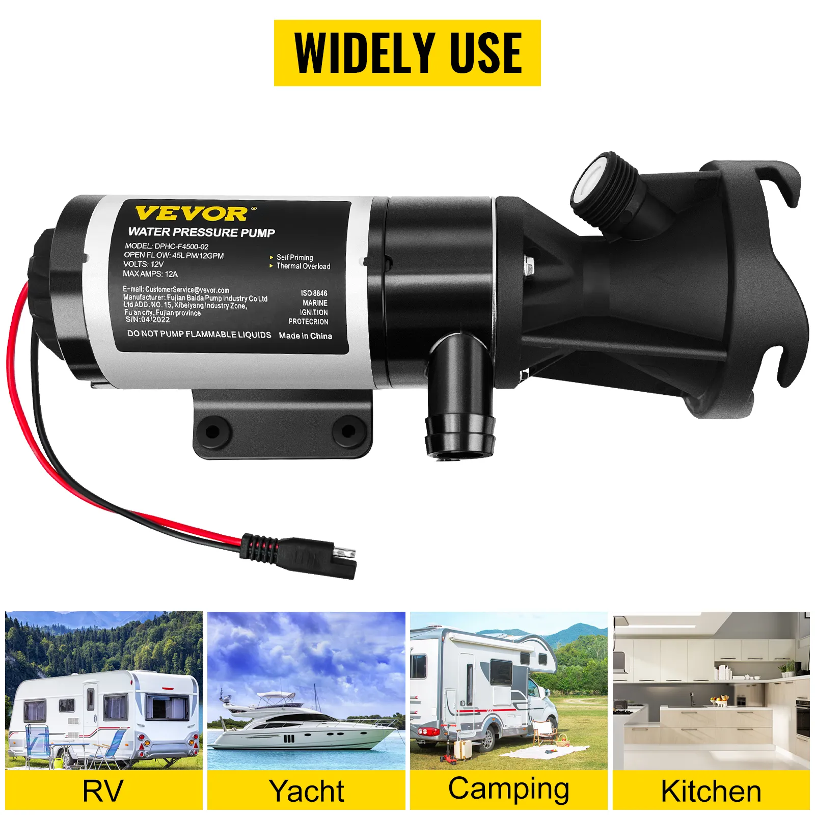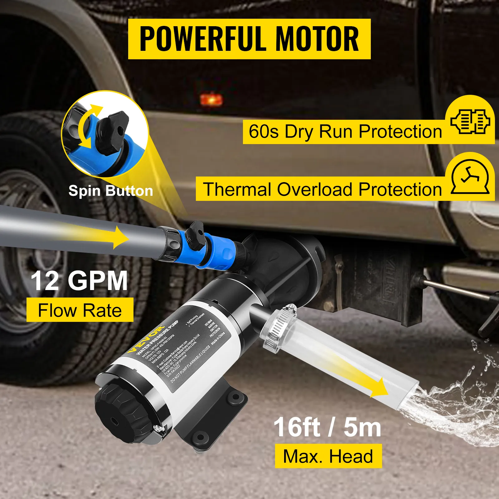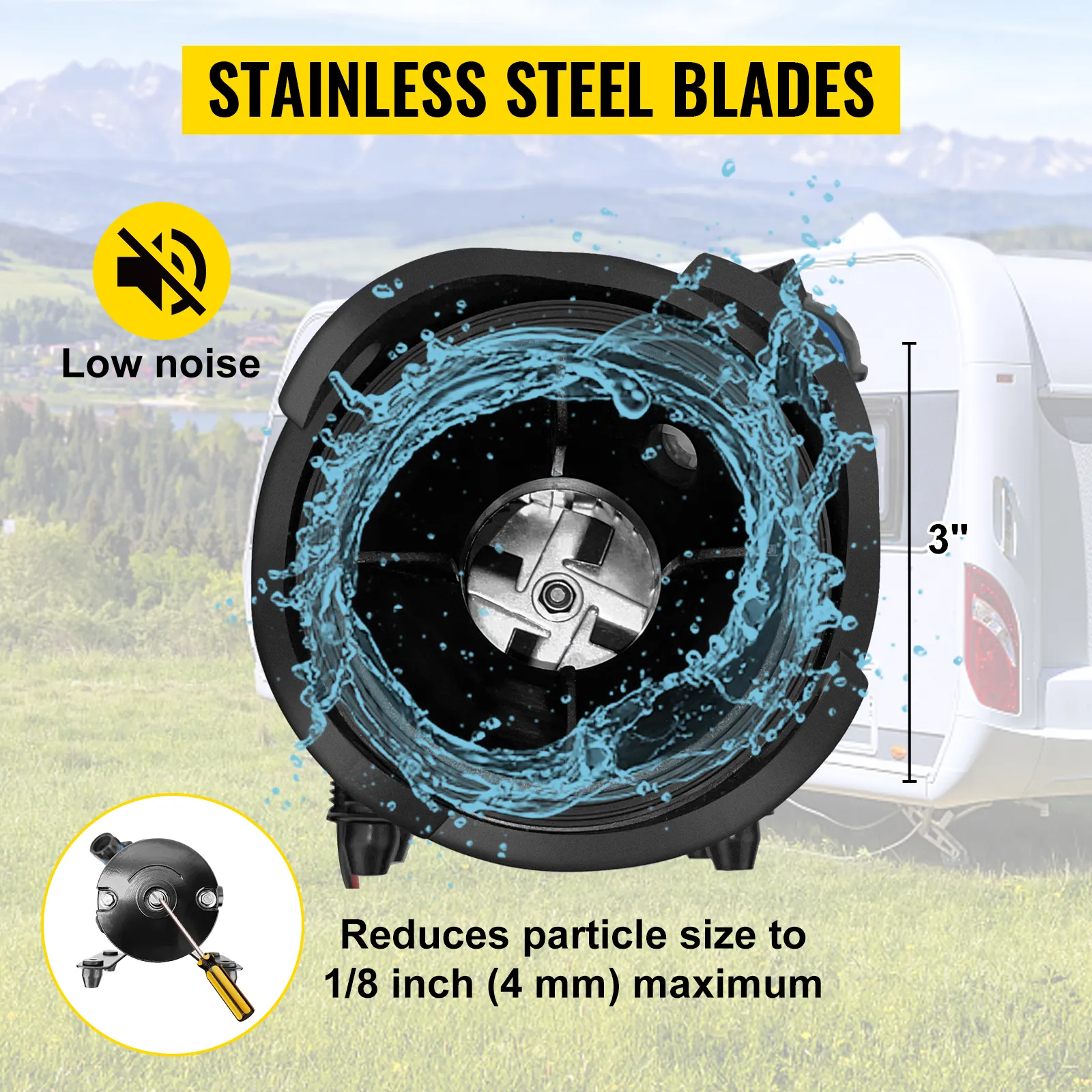 Bomba maceradora VEVOR RV, bombas de residuos de agua autocebantes de 12 V 12 GPM con conector RV y manguera, altura de elevación de 16 pies, liberación rápida de funcionamiento en seco de 60 s, enjuague de agua dulce y función de trituración manual, para yate RV