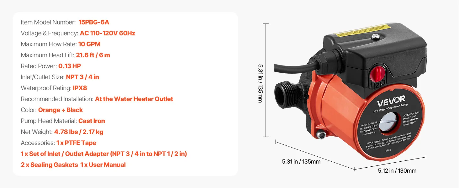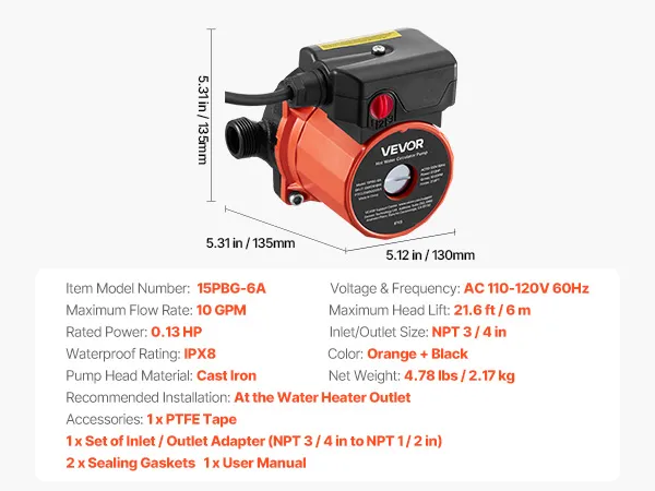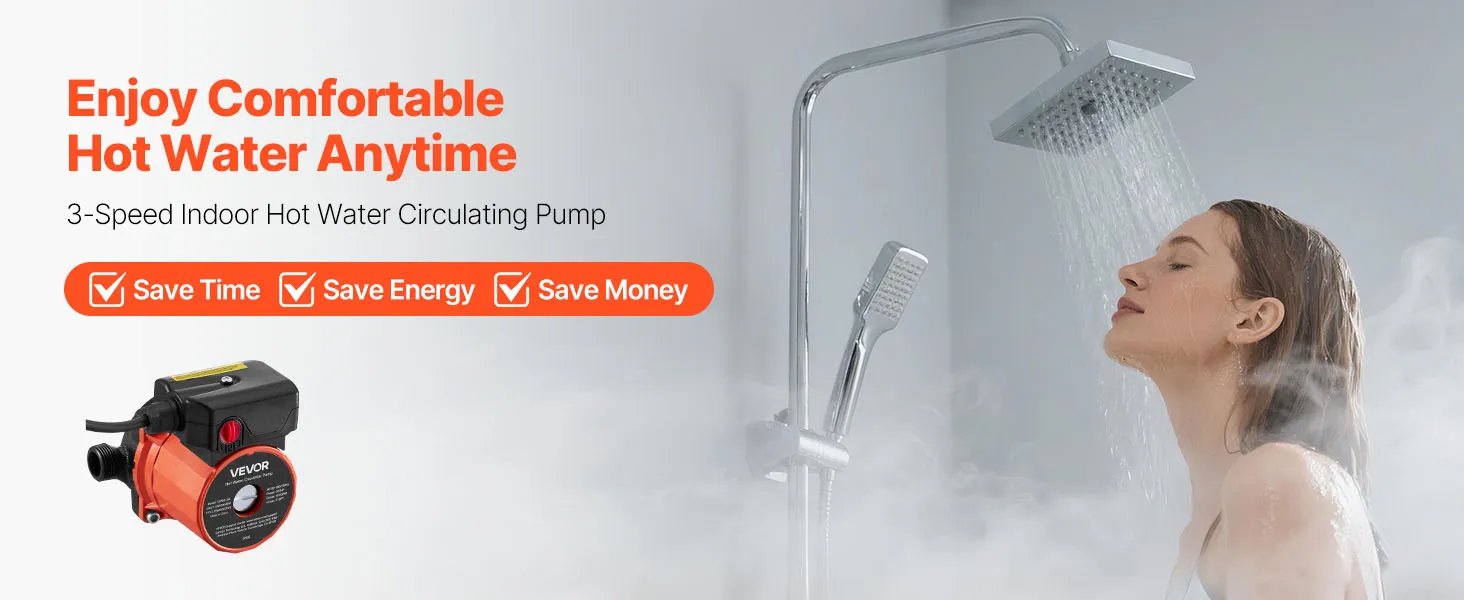 Premium Materials: Built with a cast iron pump head, this hot water recirculation pump is durable and not easy to damage. Designed for long-term use, it delivers efficient, stable hot water circulation for your home system year after year