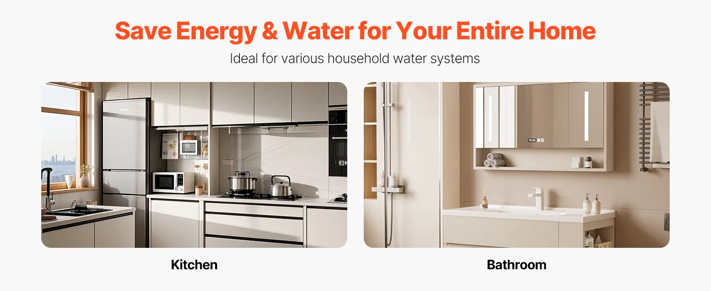 Instant Hot Water: With a max flow of 10.0 GPM and 21.6 ft head lift, this recirculating pump kit delivers the ideal temperature to every faucet and shower in seconds. Say goodbye to wasted cold water while saving energy and water