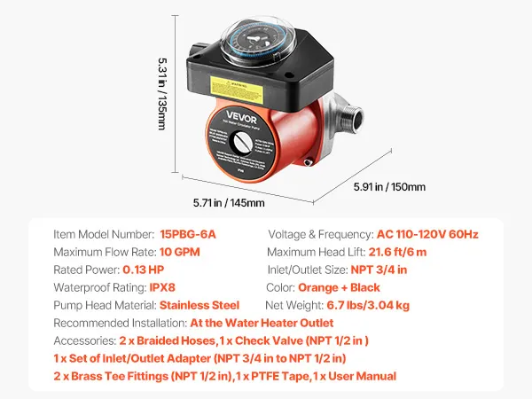 Diseñado para seguridad y confiabilidad: Fabricado con un cabezal de bomba de acero inoxidable de primera calidad y una manguera trenzada de acero inoxidable, esta bomba de recirculación de agua caliente es resistente a la oxidación y está diseñada para un suministro de agua potable seguro y limpio sin olores desagradables.