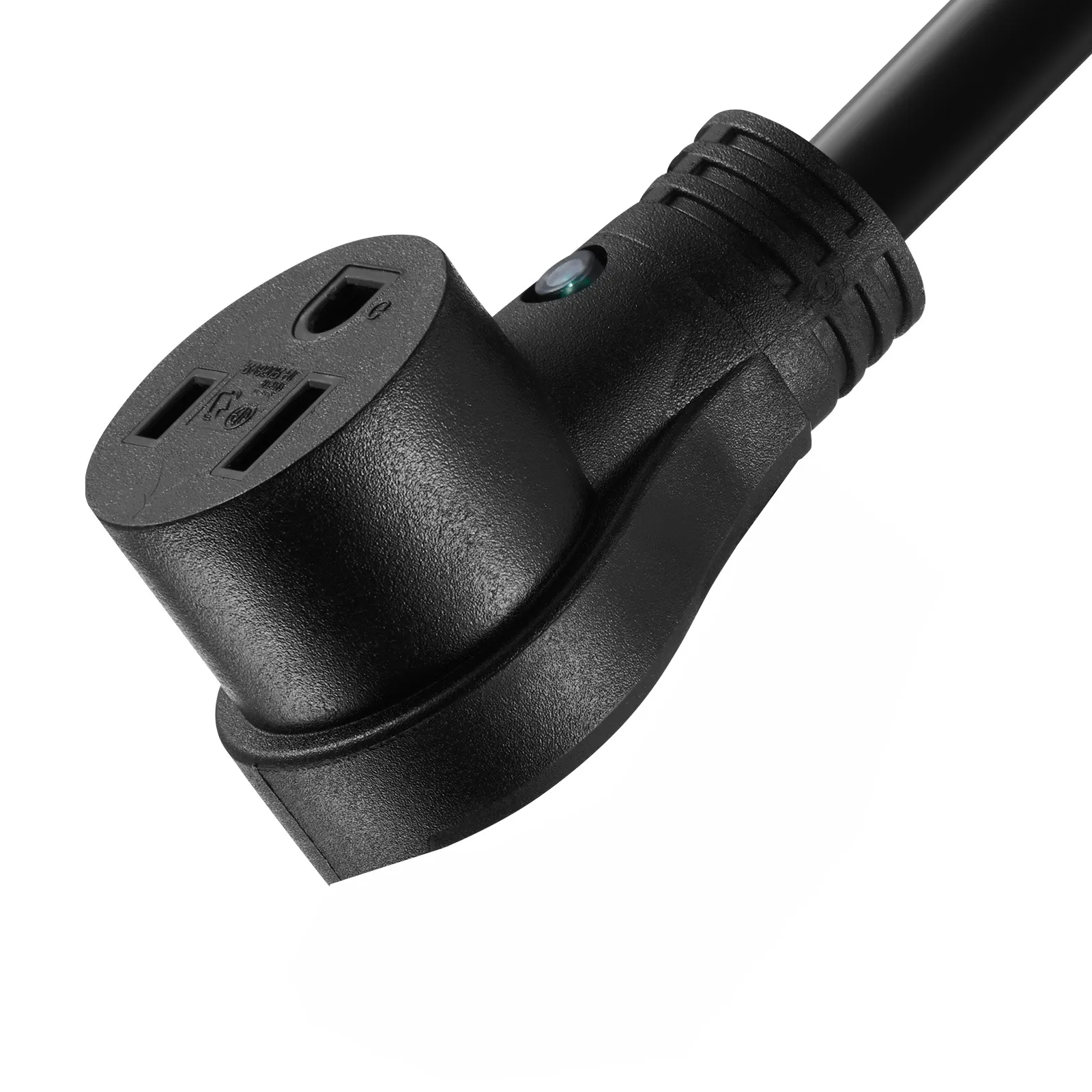 The extension cord extends 50-feet long, providing the necessary length to power your RV or charge your electric car. It is suitable for long-distance work.