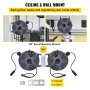 Este carrete se puede montar tanto en la pared como en el techo para mantener los cables eléctricos fuera del camino cuando no esté en uso. Puede montarse en la pared para ahorrar espacio en el suelo o montarse en el techo para evitar que los cables se arrastren.