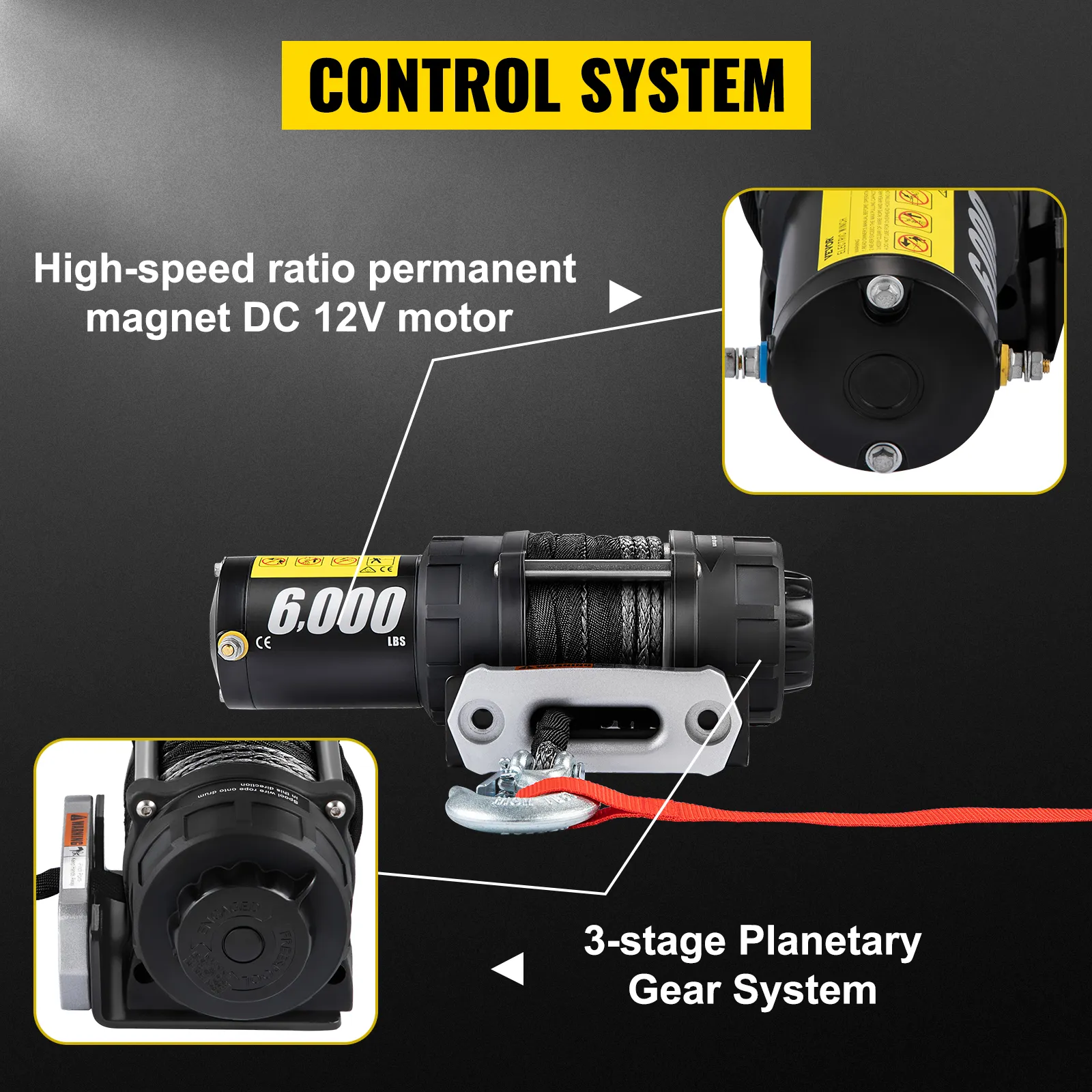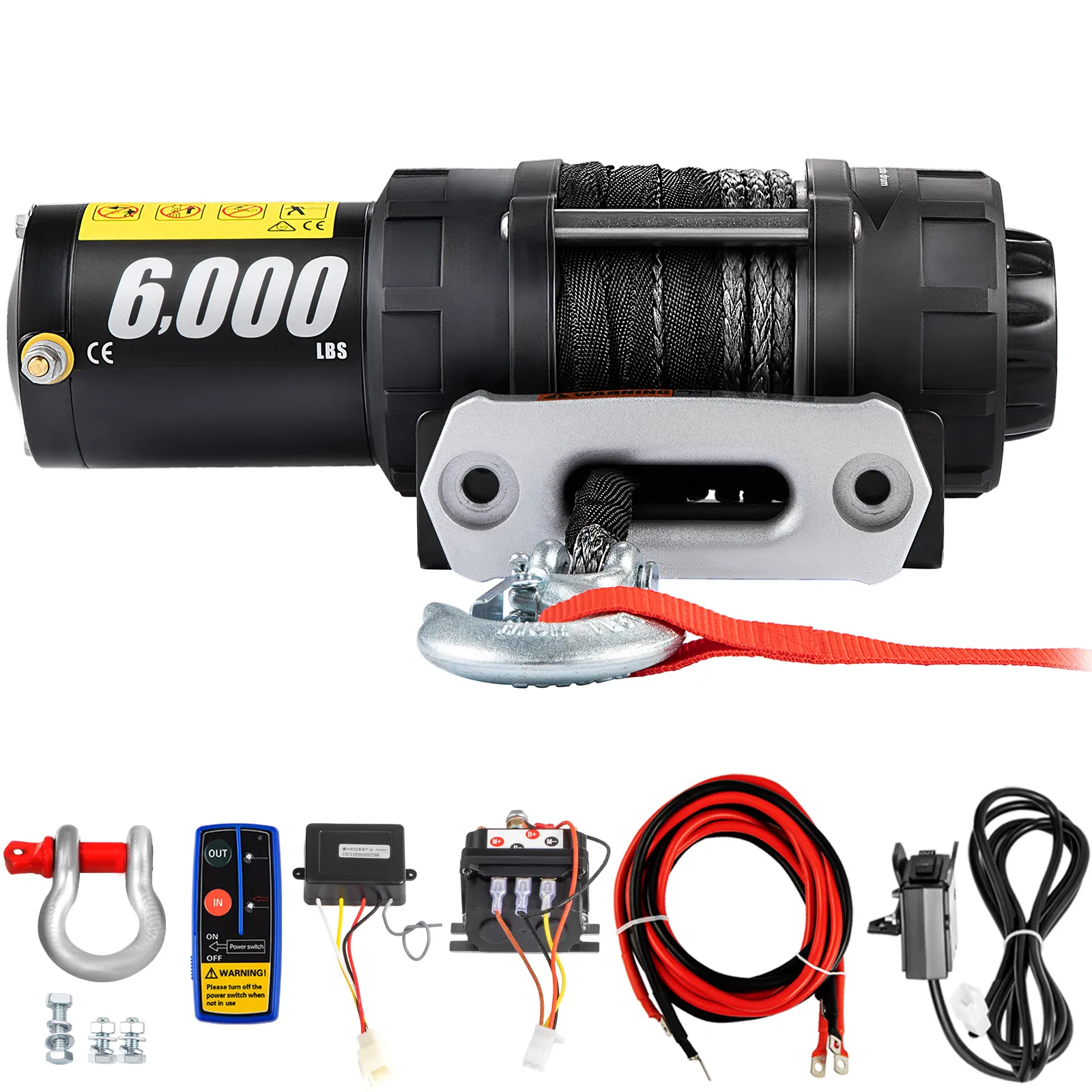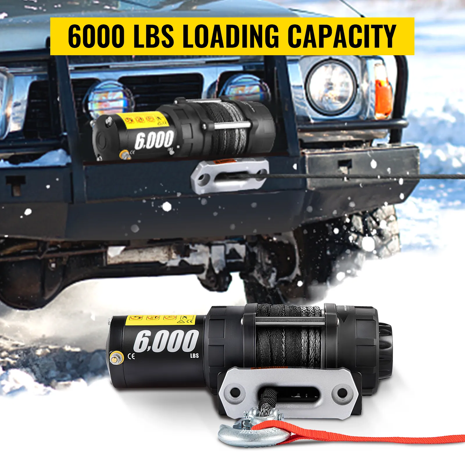 Cabrestante eléctrico mejorado para camión de 6000 libras con cuerda sintética duradera de 42,65 pies
