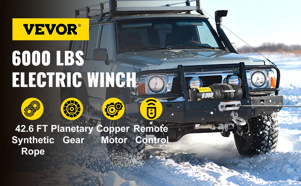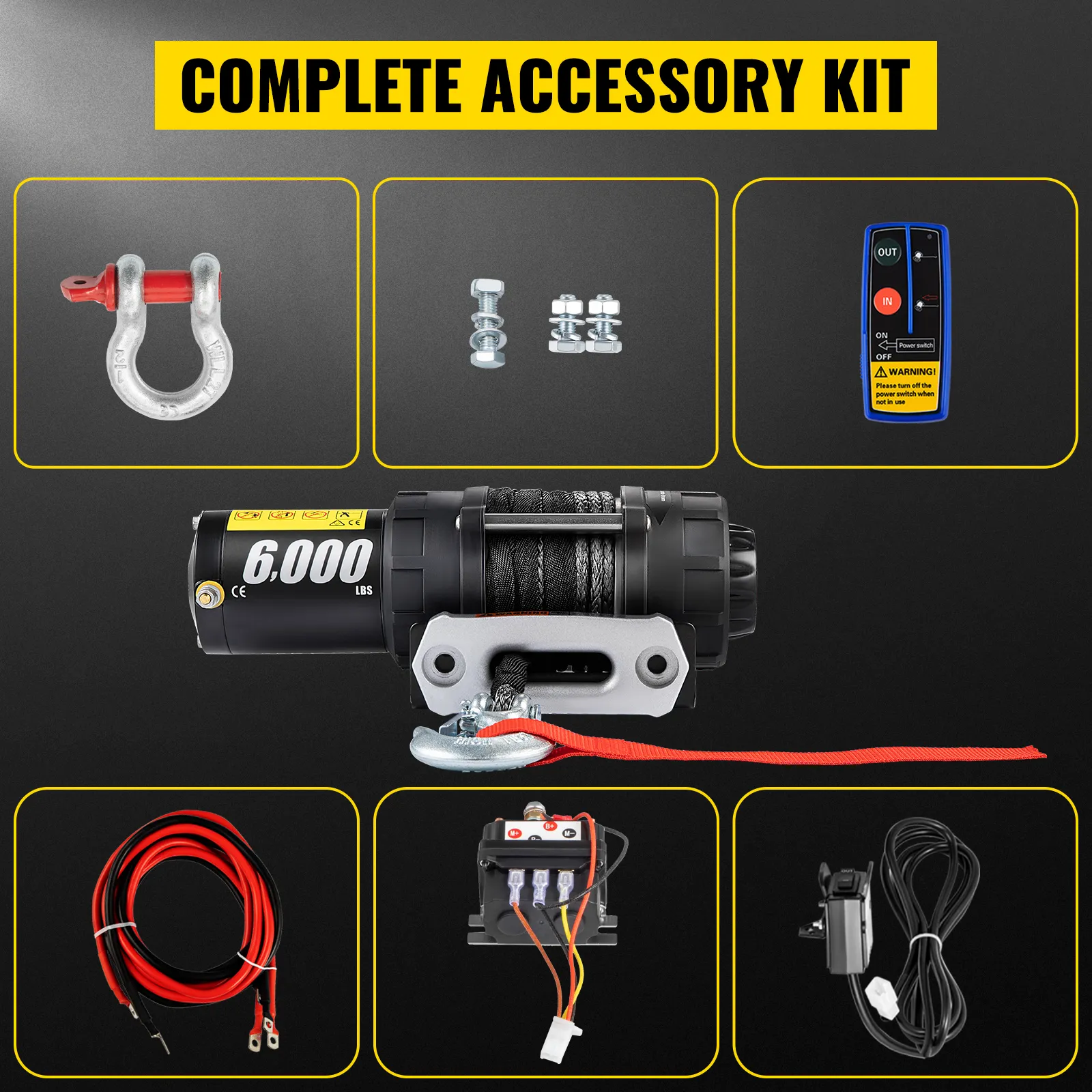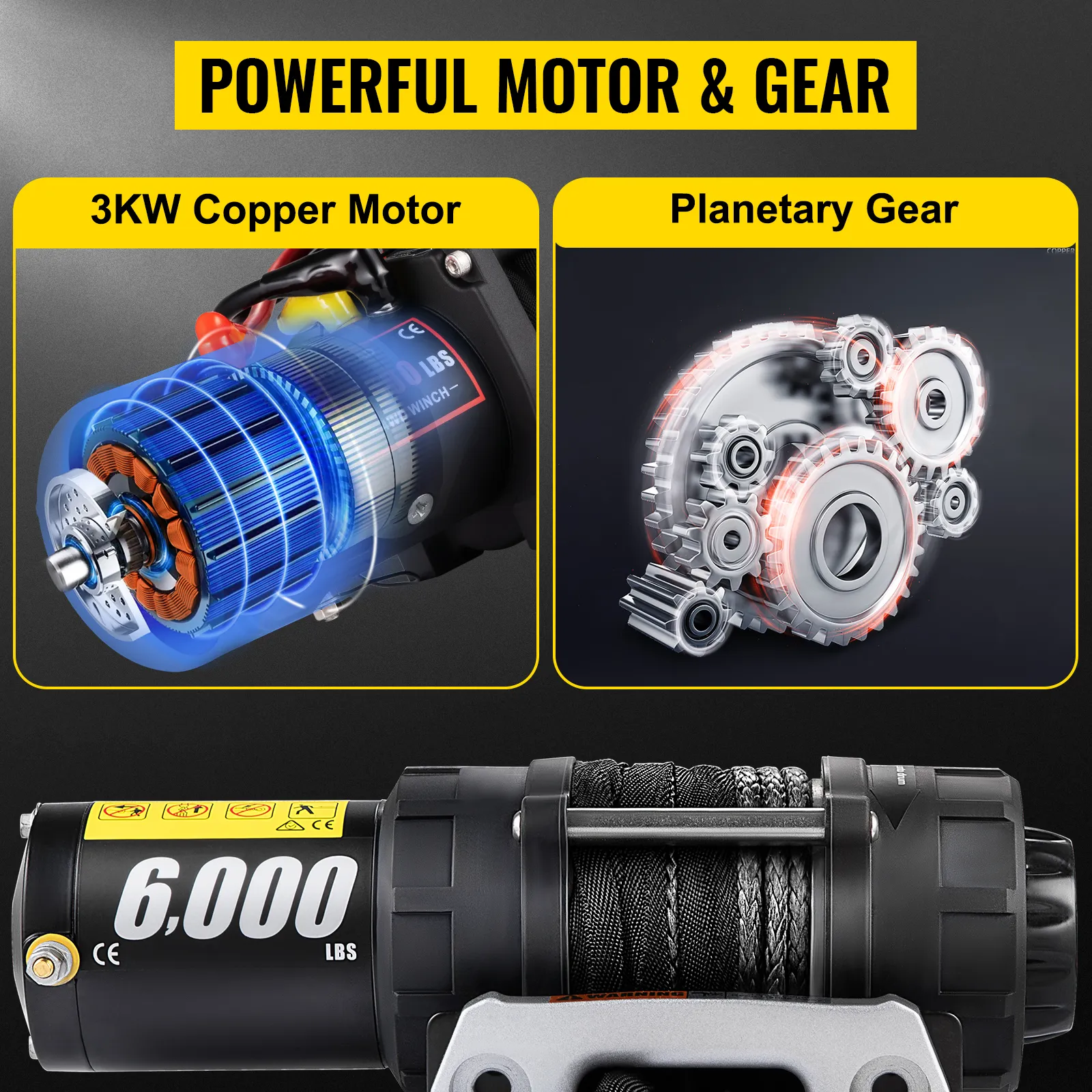 Cabrestante eléctrico mejorado para camión de 6000 libras con cuerda sintética duradera de 42,65 pies