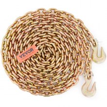 Cadena de remolque VEVOR, capacidad de carga de 7100 lb, amarre de cadena de remolque G80 de 3/8'' x 20' con ganchos de agarre, certificación DOT, revestimiento galvanizado de acero al manganeso para muelles, fábricas y obras de construcción, paquete de 2