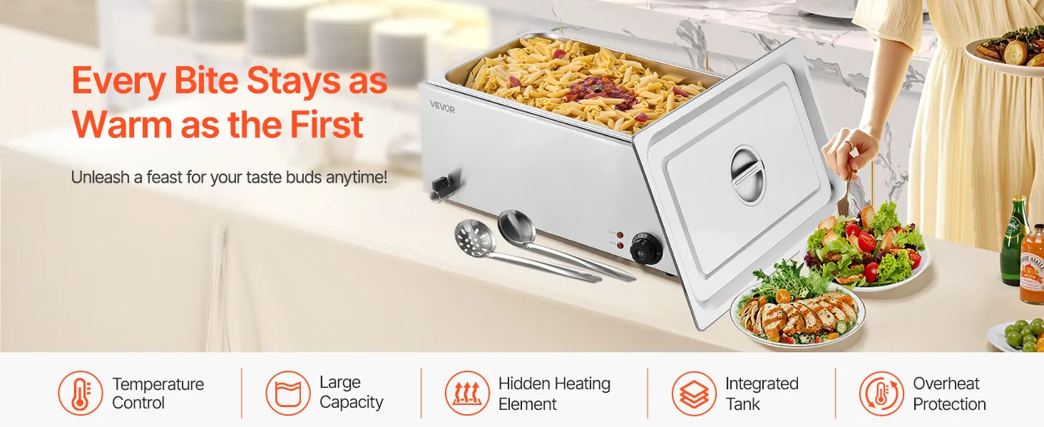 Este calentador de alimentos comercial es perfecto para hoteles, snack-bares, cafeterías y fiestas al aire libre.
