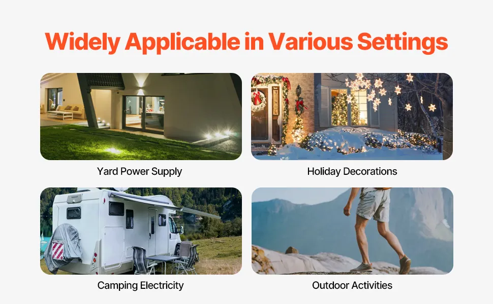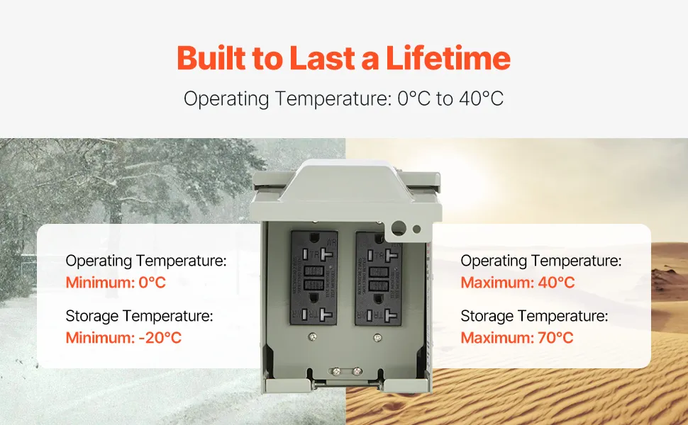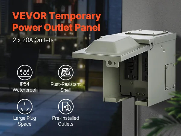 Protección GFCI para uso en exteriores: ideal para necesidades de energía temporales en exteriores, ya sea que esté decorando su jardín, preparándose para Halloween o cargando energía en el campamento, nuestro panel de tomacorrientes temporal ofrece una solución conveniente y confiable para todos sus requisitos de electricidad.