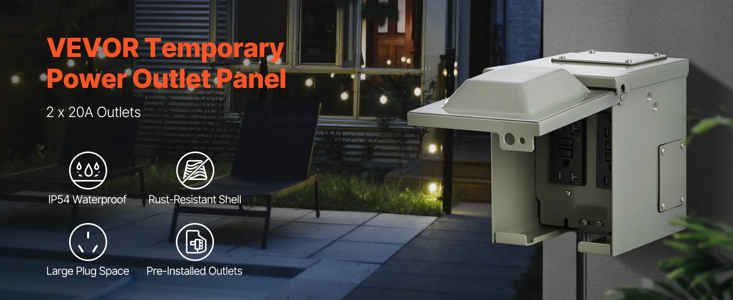 Panel de toma de corriente temporal de 20 A, energía en cualquier lugar y en cualquier momento