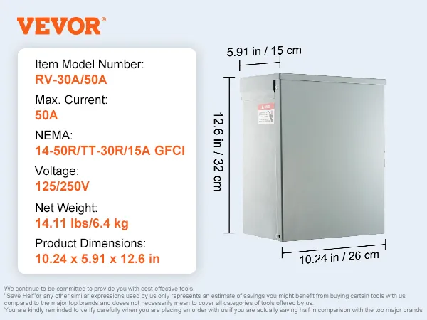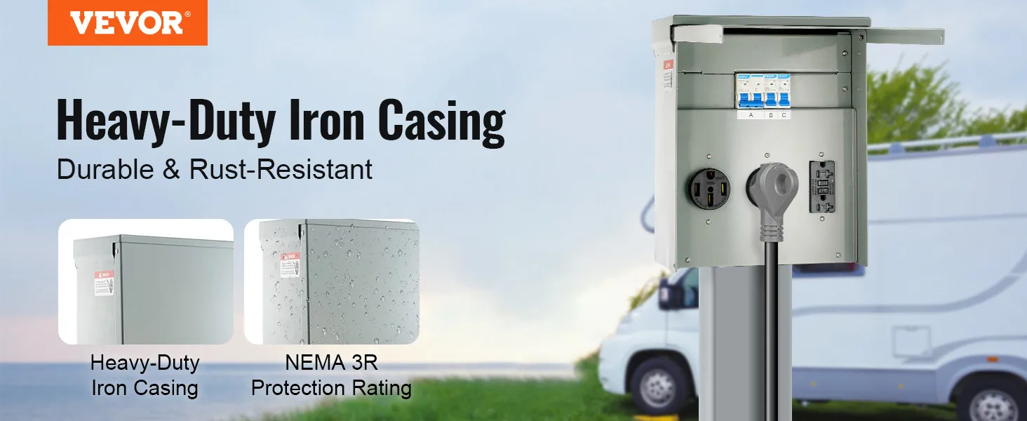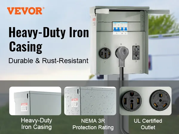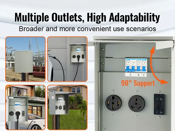 Una caja de alimentación NEMA 14-50R puede ser su solución de energía definitiva, ya sea iluminando una tarde serena o ejecutando un sitio de construcción bullicioso. Se adapta a múltiples aplicaciones, ya sea cargar un vehículo eléctrico o encender su vehículo recreativo. Hace posible tu actividad al aire libre en cualquier circunstancia. Elegir una Caja Outlet VEVOR RV significa apostar por la innovación, la fiabilidad y la eficiencia.
