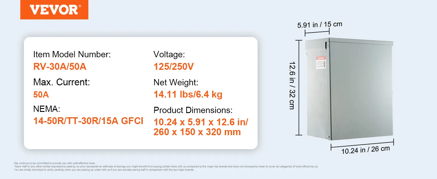 Esta caja eléctrica VEVOR RV es fácil de transportar y almacenar incluso si el espacio es limitado. No más dificultades para encontrar soluciones de almacenamiento adecuadas con el panel de toma de corriente temporal VEVOR.