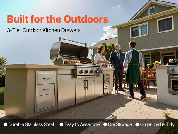 Premium-built with ample space to store grilling tools, spices, and more, taming outdoor cooking clutter. With smooth rails, you can push/pull the drawers with ease. Ideal for backyard BBQs or starlit feasts, keeping utensils organized. A sleek companion for outdoor kitchens and BBQ islands.