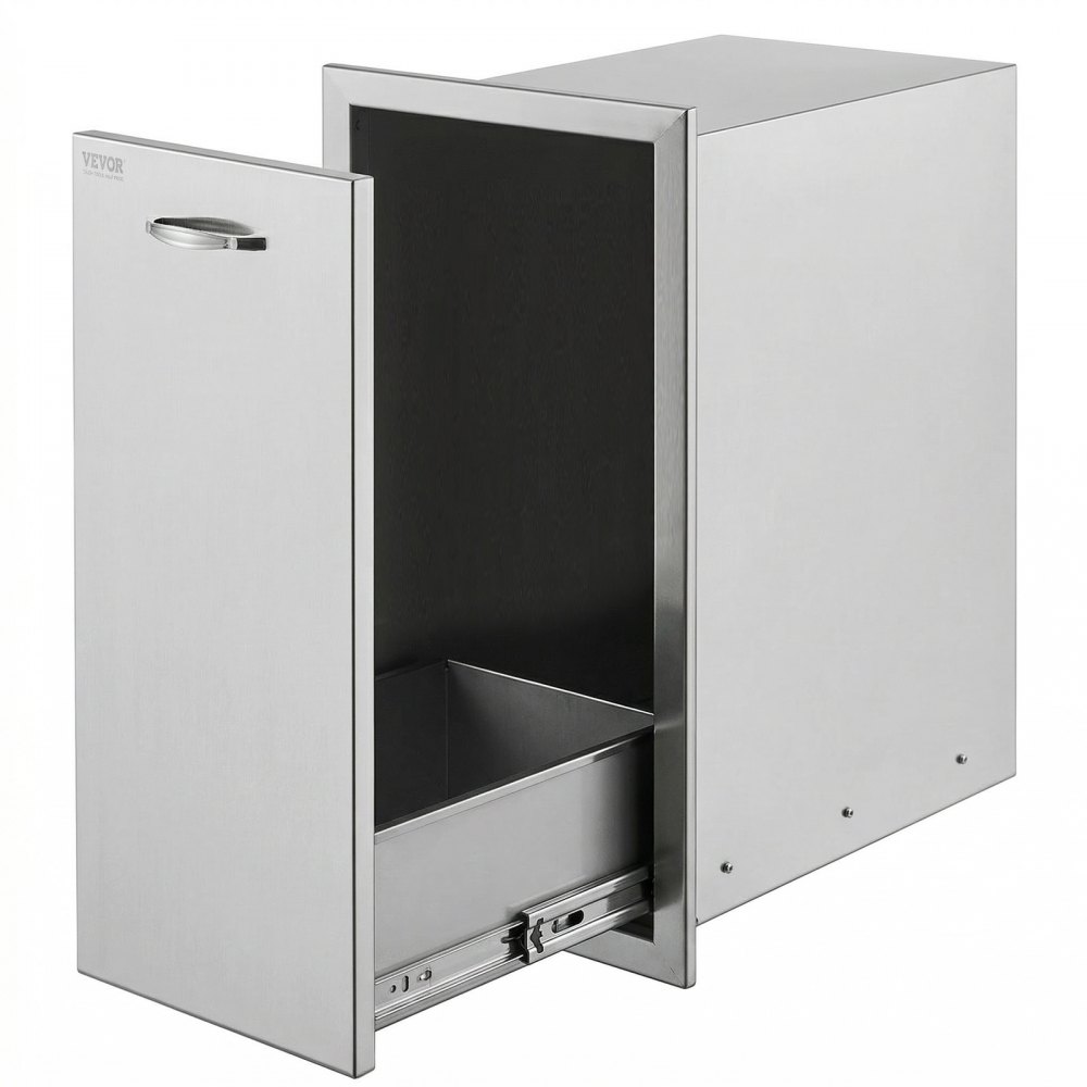 VEVOR Pull Out Trash Drawer 13.6Wx26Hx19.3D Inch Lower Sliding Rails Stainless Steel Roll Out Trash Bin Pull Out Tray Outdoor Kitchen Trash Drawer with Handle for BBQ Island Grill Station No Trash Can