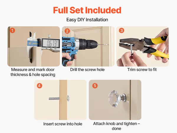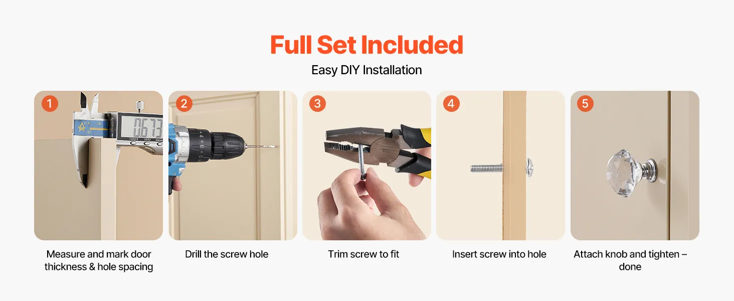 Nuestros pomos para tocador incluyen dos tamaños de tornillos que se adaptan a diferentes grosores de gabinete. Los tornillos se pueden recortar según sea necesario y la instalación es sencilla, sin necesidad de herramientas especiales.