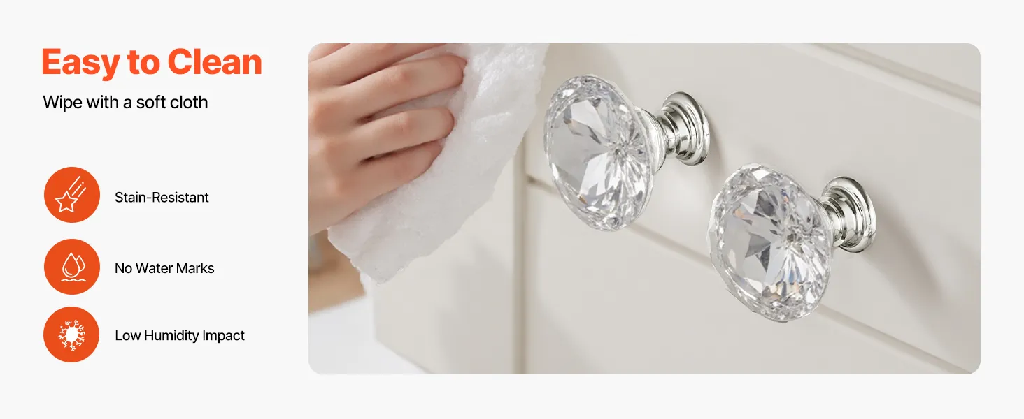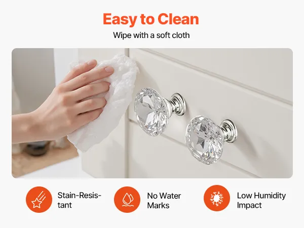Mantenimiento mínimo: Para la limpieza diaria, simplemente limpie el pomo del cajón con un paño suave, seco o húmedo. Su superficie densa y lisa resiste las manchas de agua y la grasa, recuperando su aspecto limpio y brillante en segundos y manteniéndolo impecable a largo plazo.