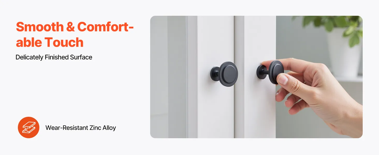 Fabricado en aleación de zinc forjado, el pomo para cajón de cómoda ofrece un tacto suave y redondeado, además de un agarre cómodo. Es resistente al desgaste, la oxidación y los daños, ideal para el uso diario frecuente.