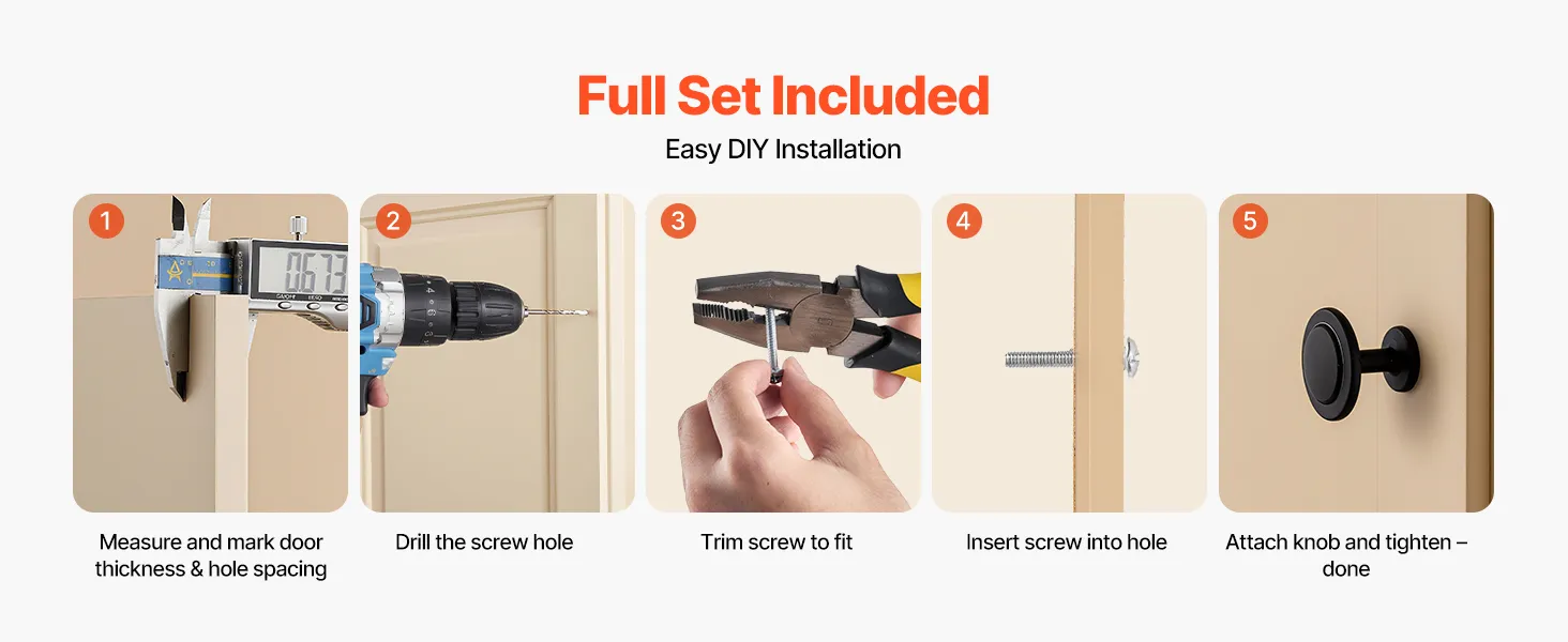 Nuestros pomos para tocador incluyen dos tamaños de tornillos que se adaptan a diferentes grosores de gabinete. Los tornillos se pueden recortar según sea necesario y la instalación es sencilla, sin necesidad de herramientas especiales.