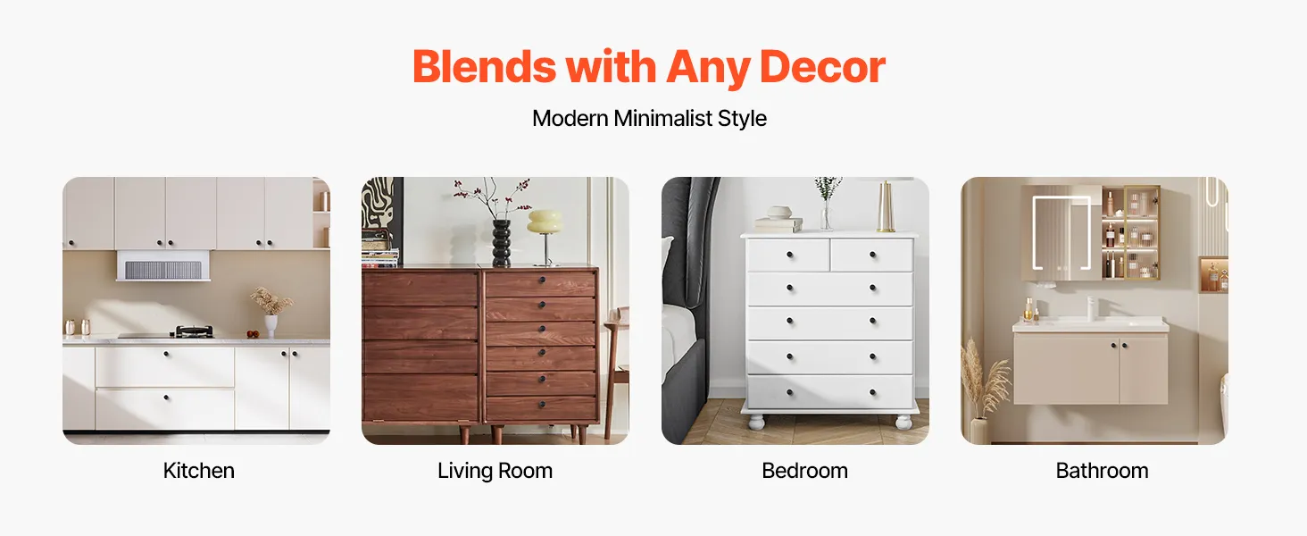 El pomo del cajón es resistente a manchas, marcas de agua y humedad. Para el cuidado diario, simplemente límpielo con un paño suave. El mantenimiento es rápido y sencillo.