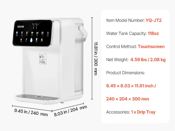 Pantalla táctil colorida: la pantalla inteligente LED muestra la temperatura y el volumen del agua claramente, con una pantalla sensible al tacto que es fácil de usar, lo que hace que sea sencillo para todos en la familia operar el dispensador de agua caliente instantánea de escritorio.