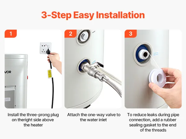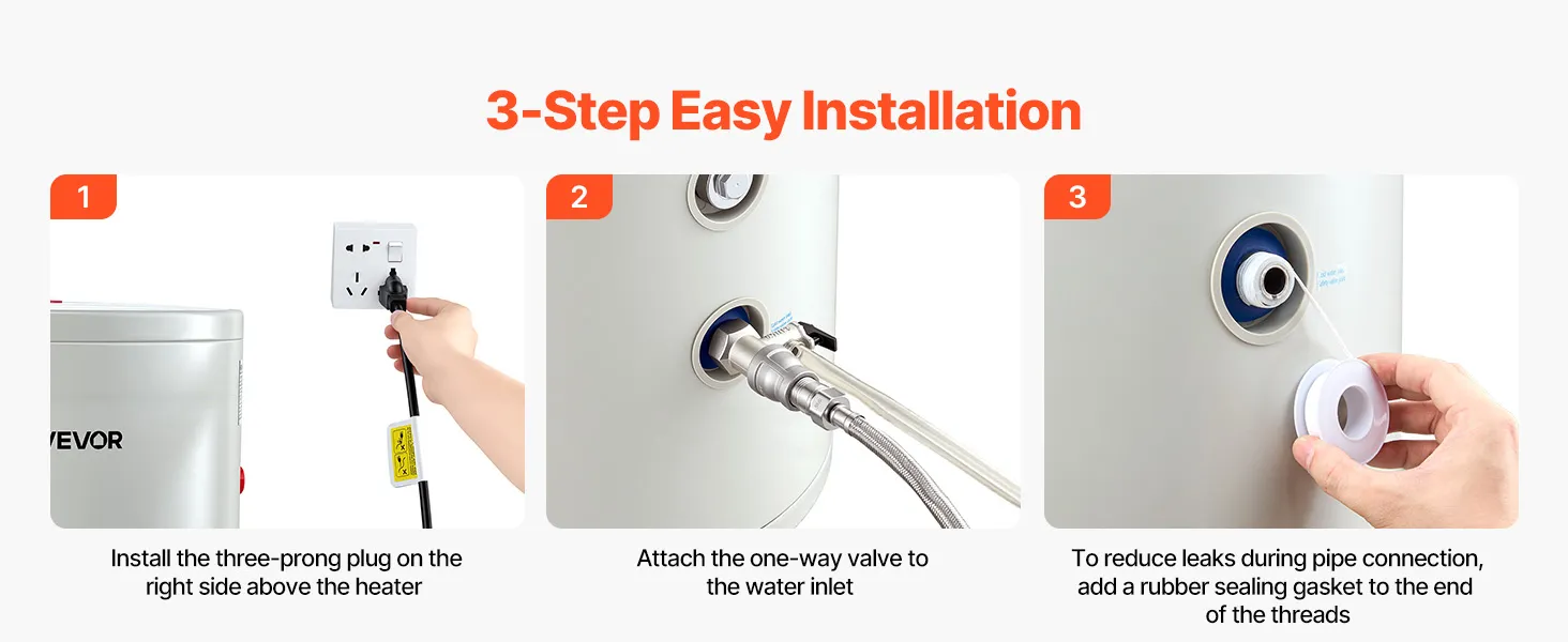 Instalación sencilla y flexible: Nuestro calentador de agua eléctrico cuenta con un diseño elegante e incluye un manual claro e instrucciones gráficas para una fácil instalación. Su tamaño compacto se adapta fácilmente debajo de fregaderos, trasteros o con dispositivos de refuerzo, ideal para aficionados al bricolaje.