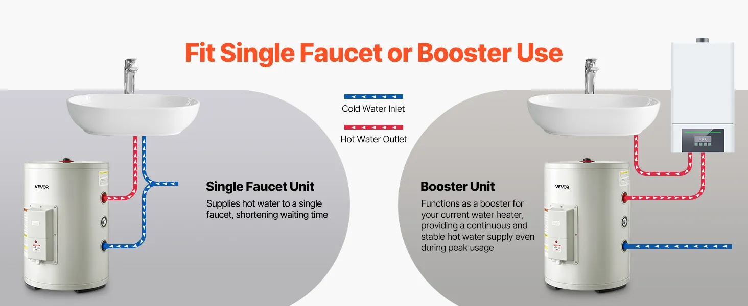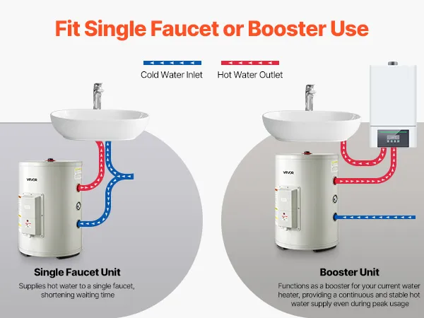 Capacidad de 12 galones: Diseñado para apartamentos pequeños, monoambientes o puntos de agua remotos, nuestro calentador de agua con tanque admite una o dos salidas de agua. Proporciona abundante agua caliente para duchas, lavado de manos y lavavajillas, satisfaciendo las necesidades diarias de personas solteras o parejas.