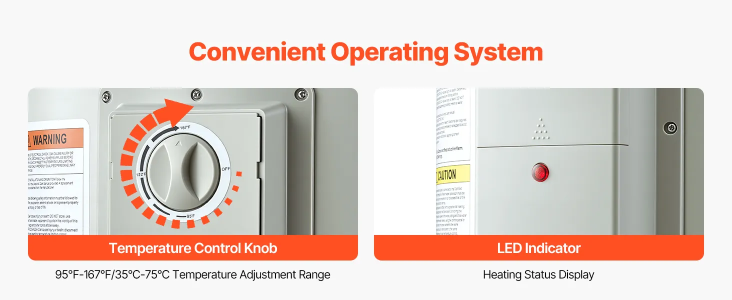 Calentamiento rápido y excelente aislamiento: Nuestro calentador de agua de almacenamiento cuenta con un tubo de calentamiento por inmersión extendido para un calentamiento rápido y uniforme. La capa aislante de espuma de 20 mm de espesor minimiza la pérdida de calor, manteniendo la temperatura del agua constante y ahorrando energía.