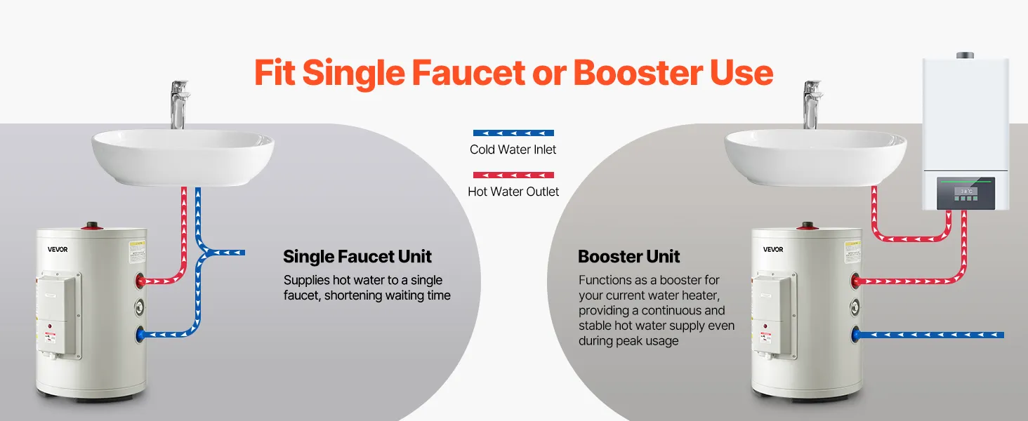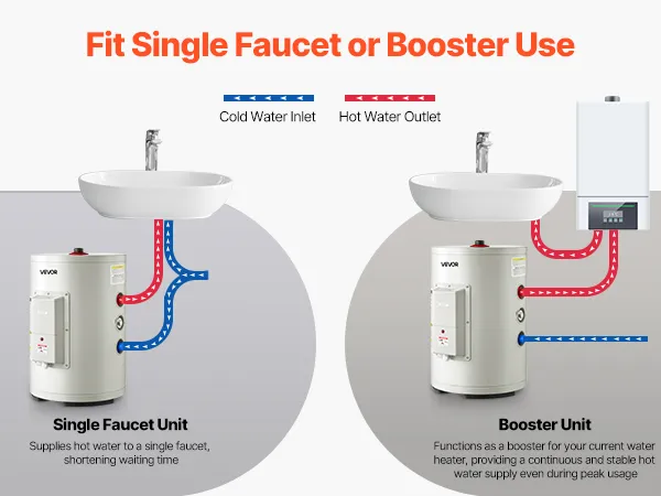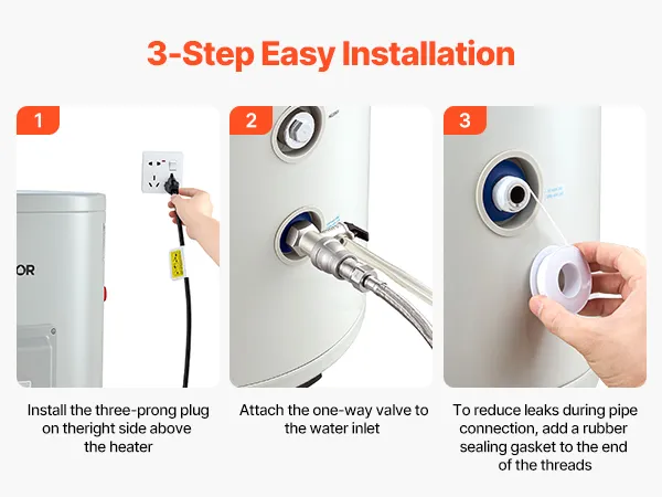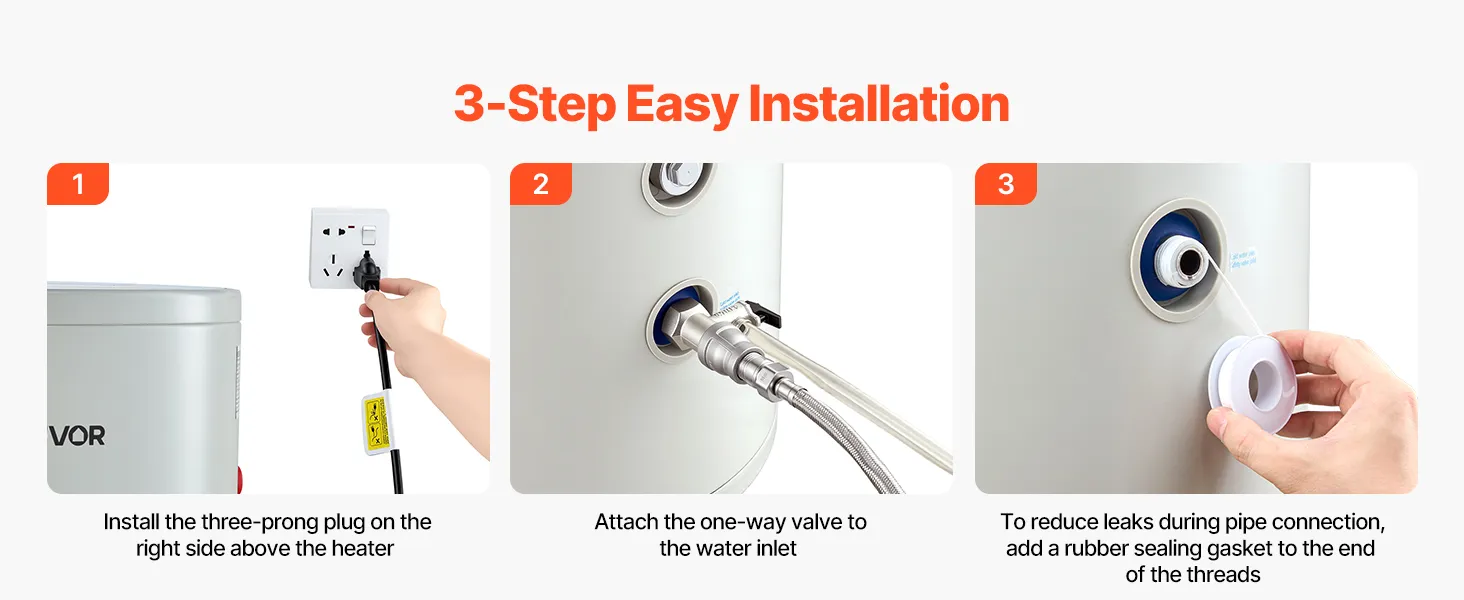 Instalación sencilla y flexible: Nuestro calentador de agua eléctrico cuenta con un diseño elegante e incluye un manual claro e instrucciones gráficas para una fácil instalación. Su tamaño compacto se adapta fácilmente debajo de fregaderos, trasteros o con dispositivos de refuerzo, ideal para aficionados al bricolaje.