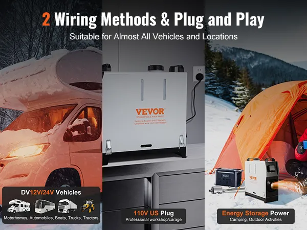 El calentador diésel recientemente actualizado está equipado con dos opciones de conexión de energía, lo que le permite experimentar calor continuo en varios lugares, como automóviles, garajes y campamentos al aire libre. Con un bajo consumo de combustible de 0,16 L-0,62 L/h y un bajo nivel de ruido ≤75 dB, no molesta al acampar en vehículos recreativos.