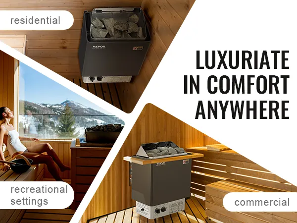 Obtenga grandes beneficios: nuestra estufa de sauna es versátil e ideal para una amplia gama de entornos de sauna, incluidos saunas residenciales, spas, gimnasios y más. Brinda la oportunidad perfecta para relajarse con sus seres queridos, lo que le permite aliviar el estrés, mejorar la calidad del sueño, recuperar la energía, rejuvenecer su espíritu y mejorar el bienestar general.