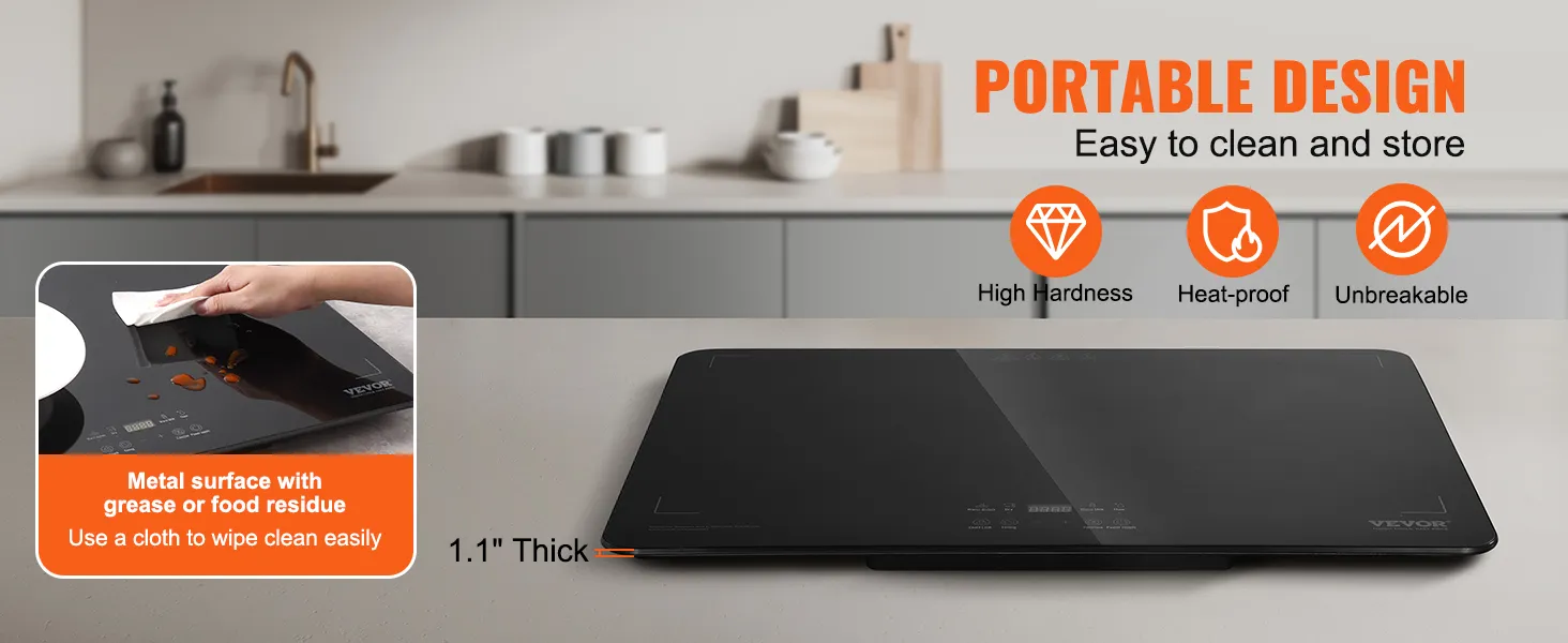 Duradero y fácil de limpiar: fabricado con un panel de vidrio templado microcristalino, es muy duradero, resistente al calor y no se agrieta fácilmente. La superficie lisa e impermeable es fácil de limpiar: simplemente limpie el aceite y los residuos de comida, lo que evita las complicaciones de mantenimiento.