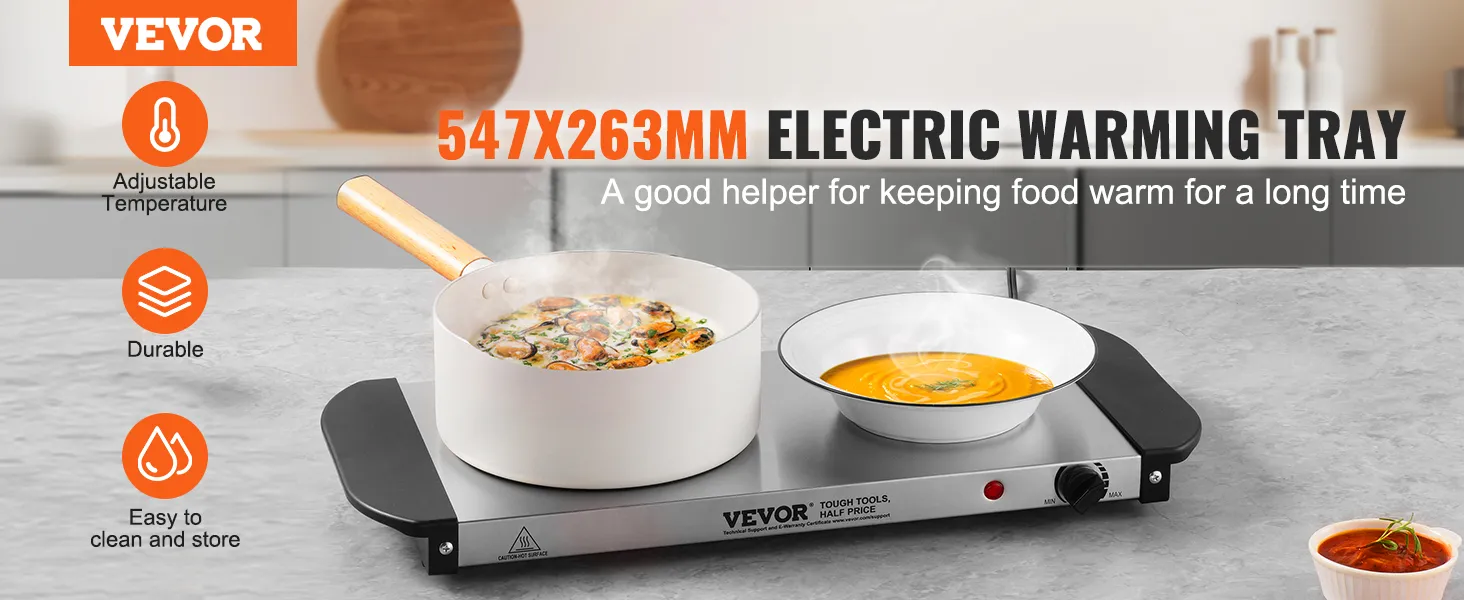Bandeja eléctrica VEVOR para calentar alimentos, bandejas para bufé, bandejas con control de temperatura ajustable, calentador de alimentos portátil de acero inoxidable, placa calefactora perfecta para fiestas, catering y festividades.