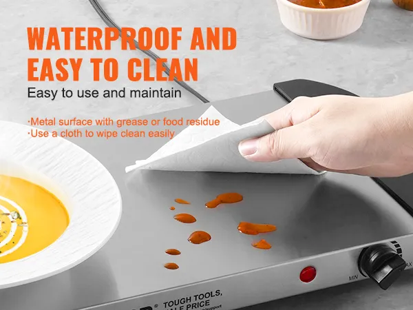 Nuestra bandeja calentadora eléctrica está hecha con un panel de metal de acero inoxidable, es muy duradera, resistente al calor y no se agrieta fácilmente con el tiempo.