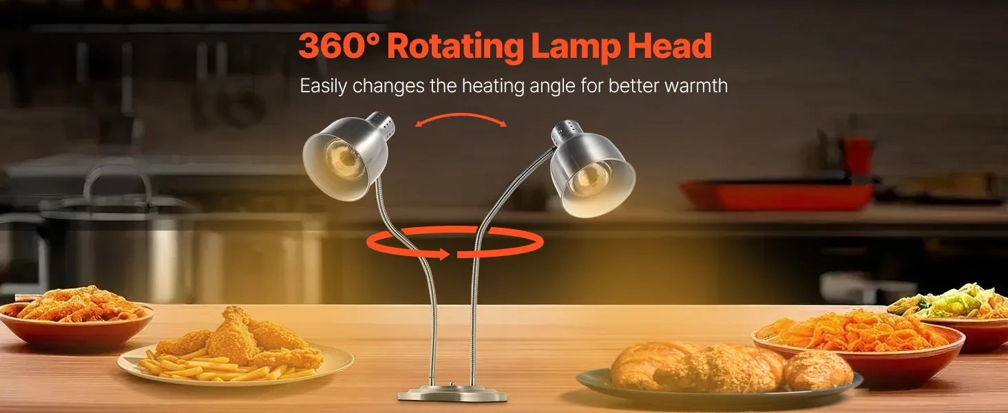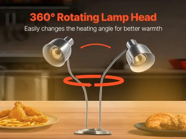 Versatile Adjustable Angle: Easily adjust our food warmer lamp's 360° angle to fit the unique needs of your dishes. This feature helps you ensure the optimal possible flavor and texture for each dish every time.