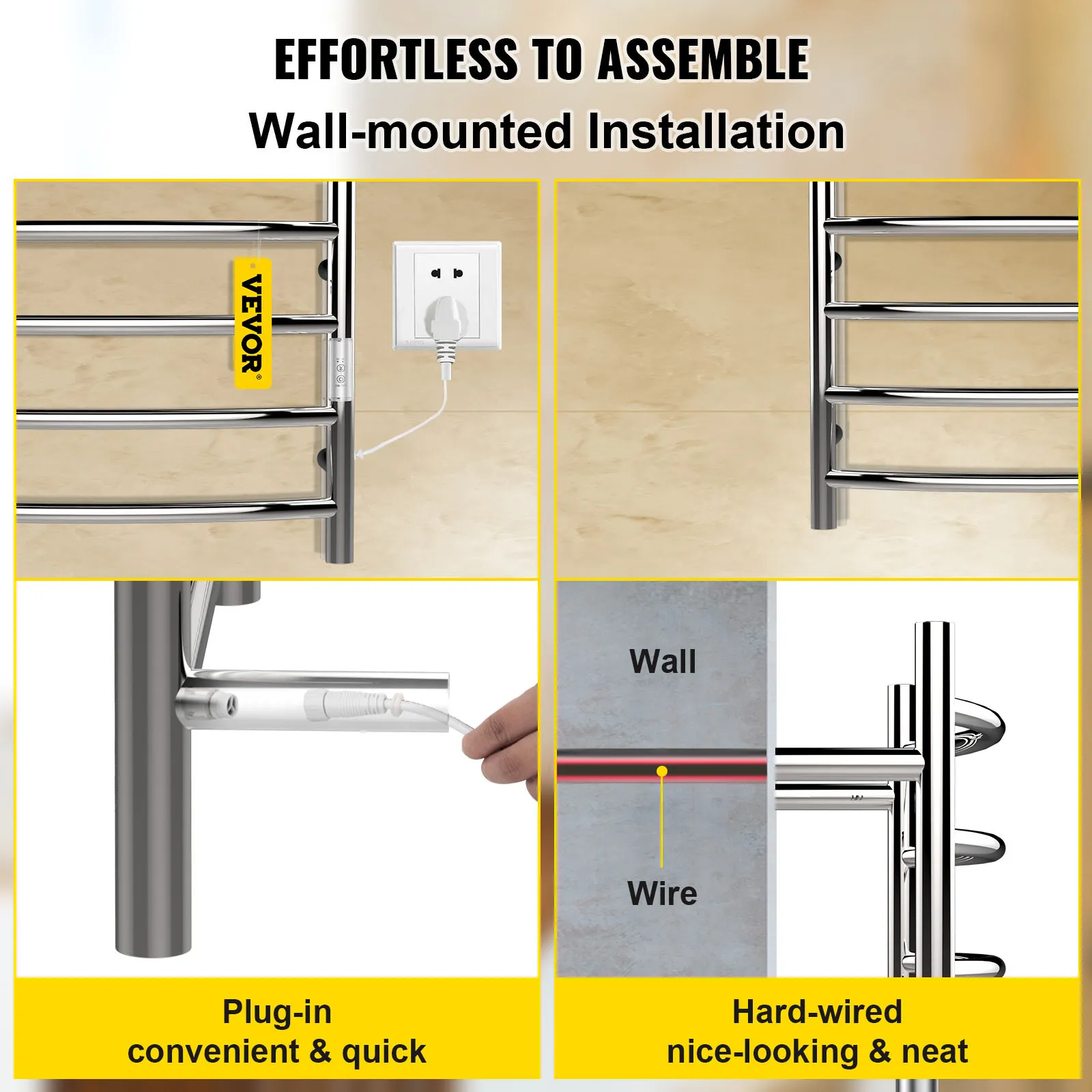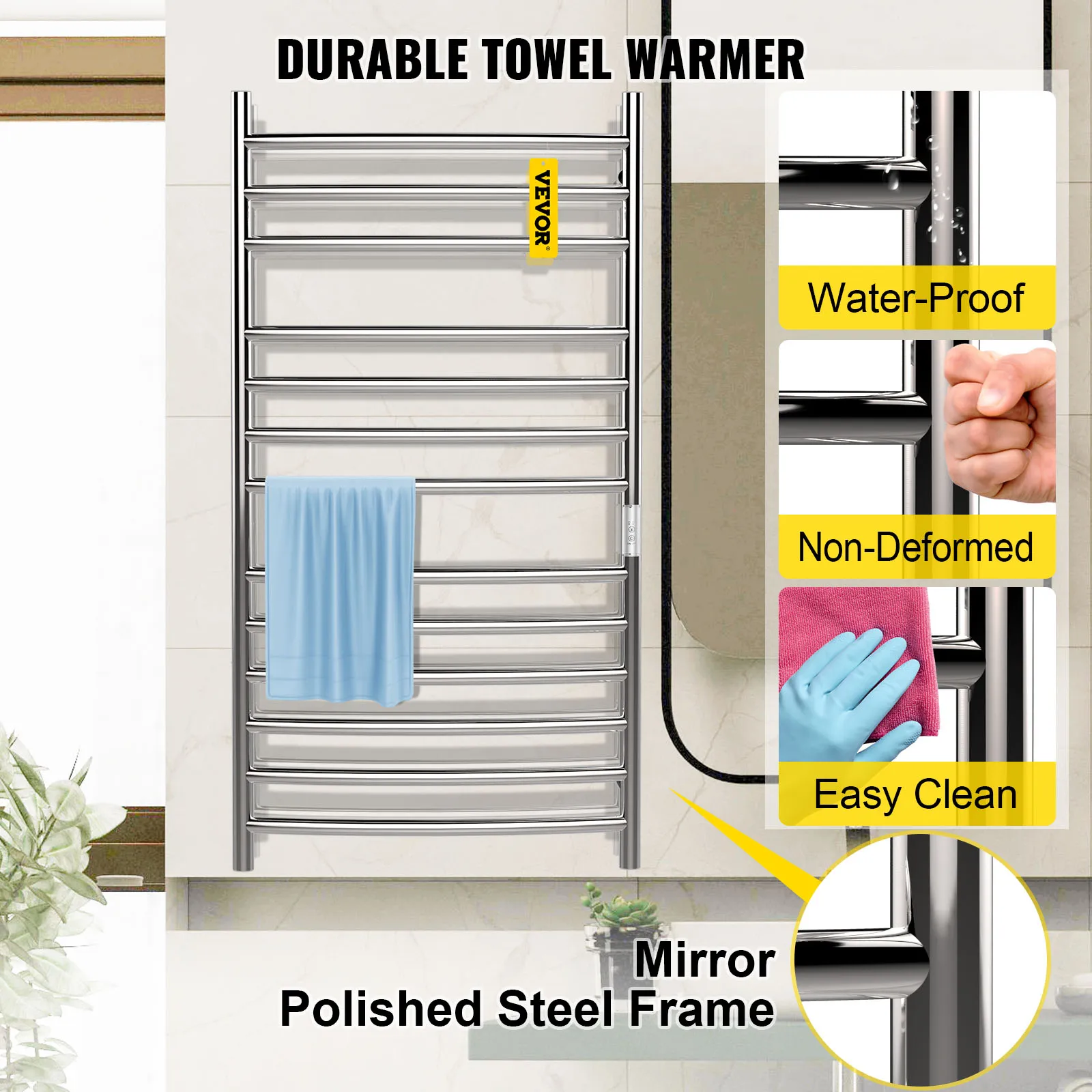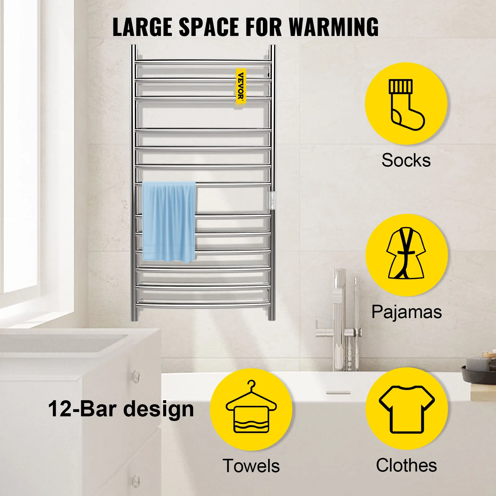 Adecuado para calentar varias prendas simultáneamente. El toallero calentado proporciona una capacidad de carga máxima de 11 libras para satisfacer sus necesidades.