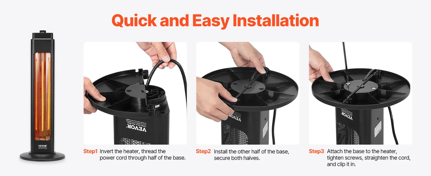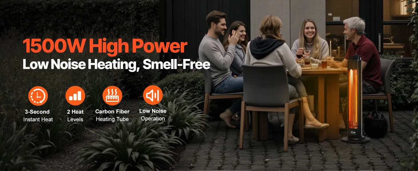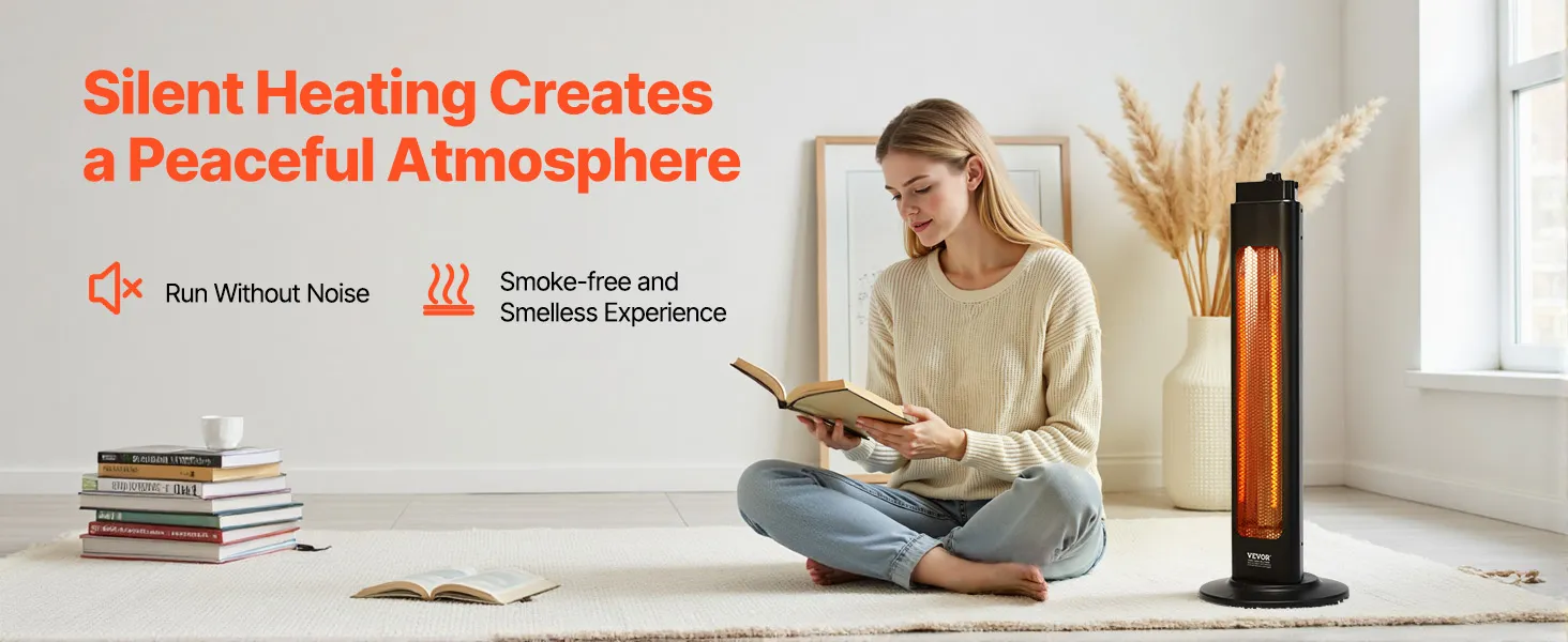 Calentamiento instantáneo: Equipado con un tubo calefactor infrarrojo de fibra de carbono, este calefactor infrarrojo ofrece alta eficiencia térmica y una distribución uniforme del calor. Se calienta en tan solo 3 segundos sin precalentamiento, envolviéndote al instante en calor durante el frío invierno.