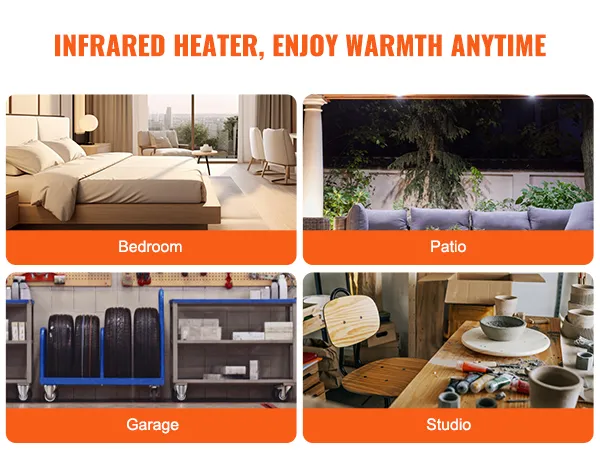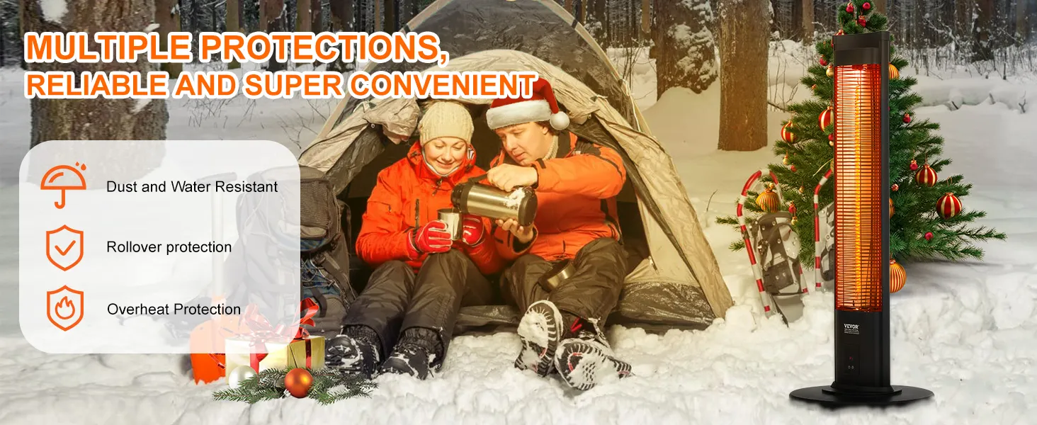 This infrared heater uses high-quality heating tubes, providing quick warmth without the need for preheating. It features multiple adjustable settings for convenience. It is ideal for homes, backyards, garages, or decks, creating a cozy environment for your outdoor activities.