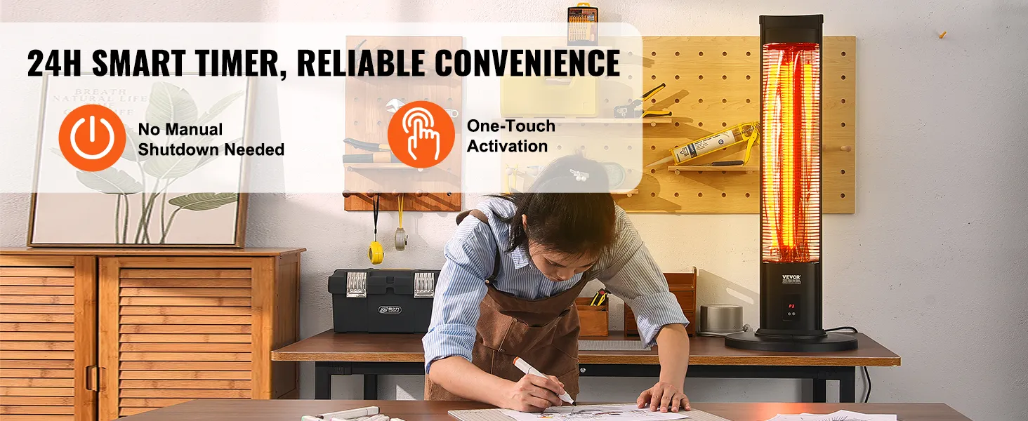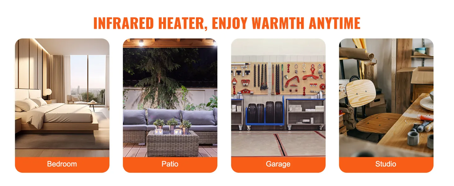 Our infrared heater features high-quality heating elements, delivering powerful, silent heating in just 3 seconds without emitting greenhouse gases, ensuring peace of mind.