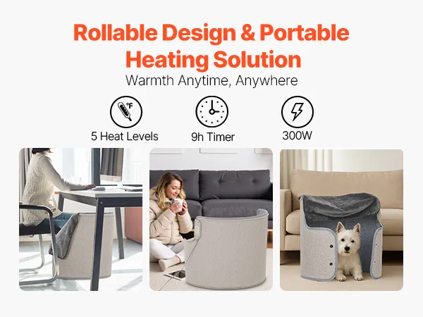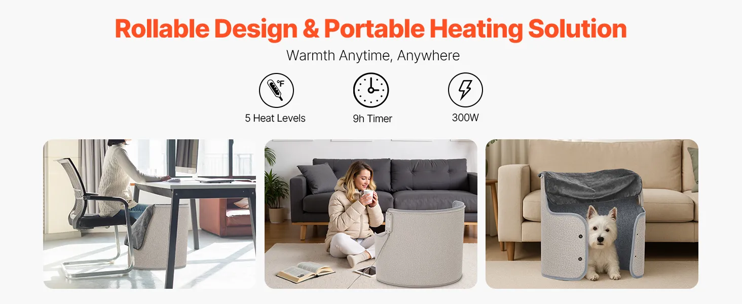 VEVOR - Calefactor portátil para debajo del escritorio, enrollable, para casa y oficina, con temporizador y seguro, silencioso para piernas y tobillos, con control táctil y remoto, almohadilla eléctrica redonda y protección contra sobrecalentamiento.