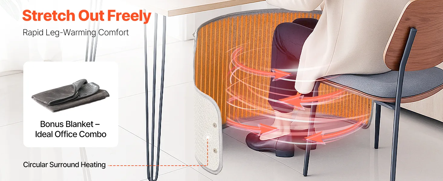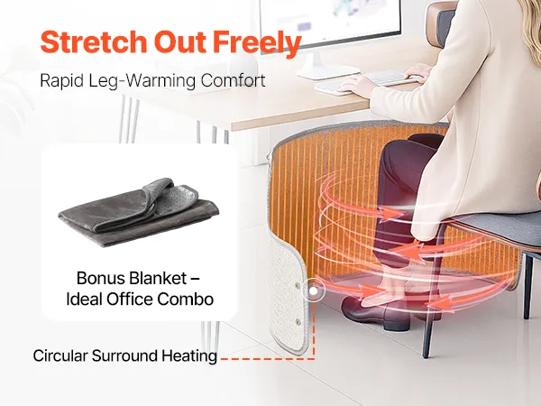 Con una distribución del calor envolvente, proporciona calor total para tus piernas. Junto con una manta gratuita, concentra el calor eficientemente para ayudarte a olvidarte del frío.
