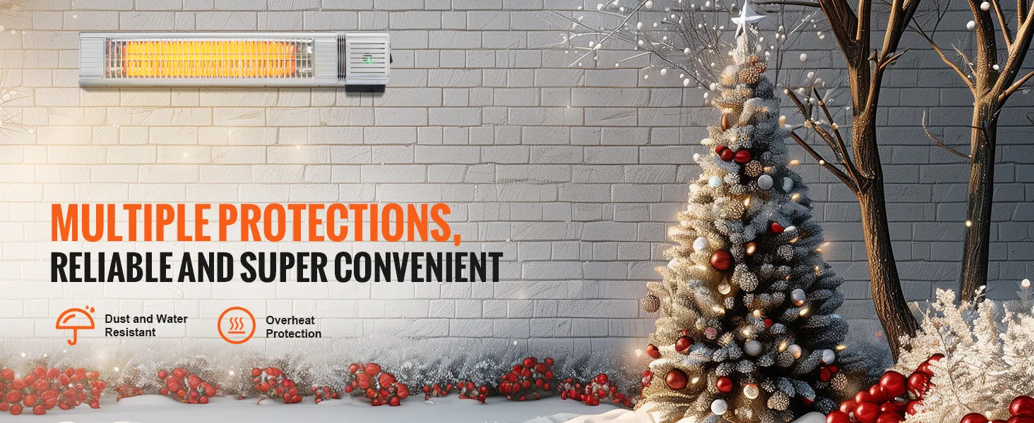 IP65 Protection: The main body is made of aluminum alloy housing, making this infrared heater rust-resistant and corrosion-resistant. Certified with IP65 protection, tested to ETL and FCC certification, it withstands snow and rain, ensuring water or moisture does not affect its functionality.