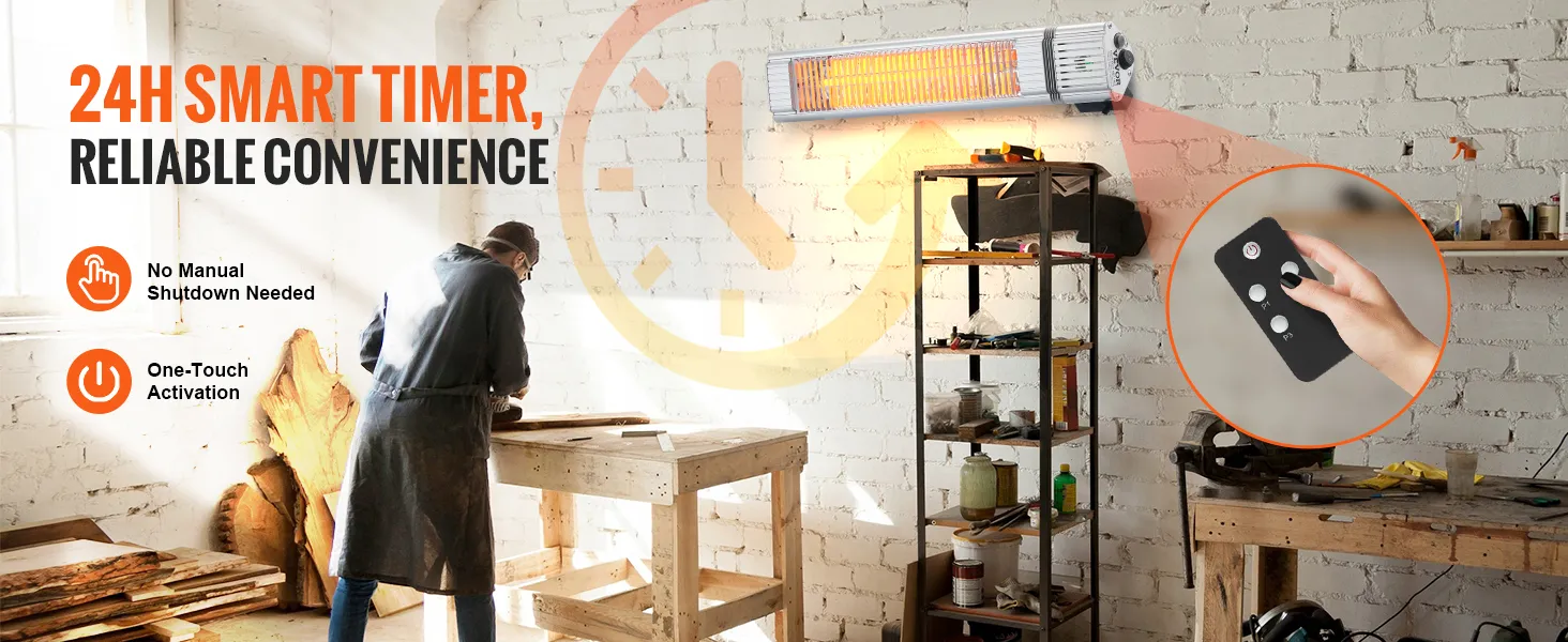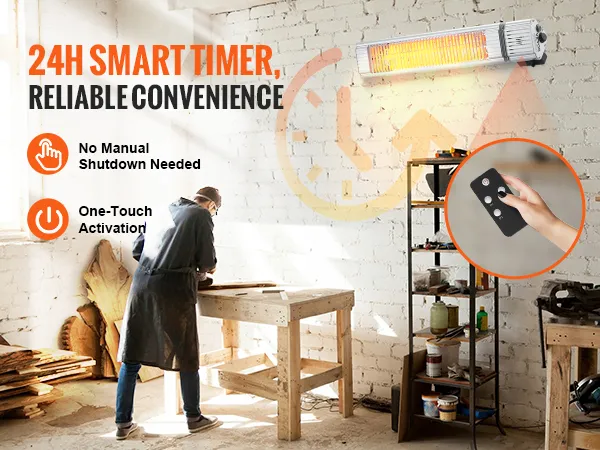 9 Adjustable Settings: With a power output of up to 1500W, it offers 9 temperature settings (300W-1500W), suitable for various levels of cold weather. Ideal for patios, garages, and studios.