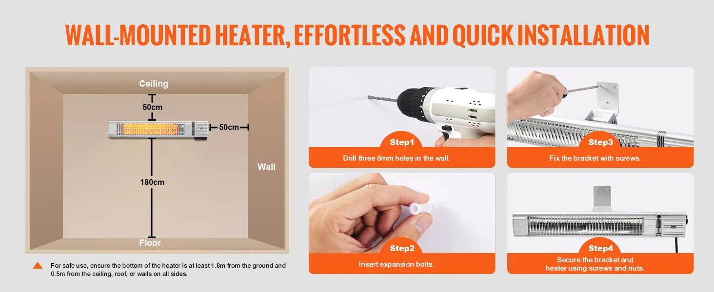 Simple, hassle-free installation in just a few steps makes this heater highly practical, allowing you to enjoy warmth effortlessly in any space.