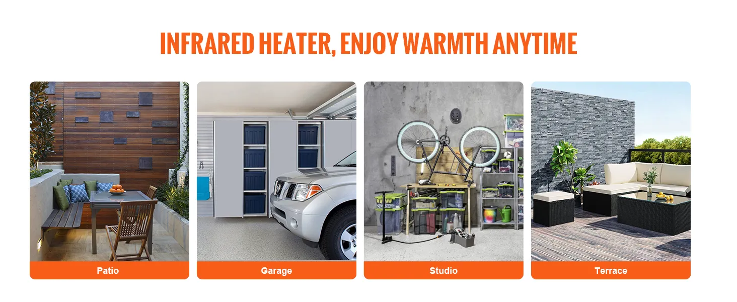 This infrared heater uses high-quality heating tubes, providing quick warmth without the need for preheating. It features multiple adjustable settings for convenience. It is ideal for homes, backyards, garages, or decks, creating a cozy environment for your outdoor activities.