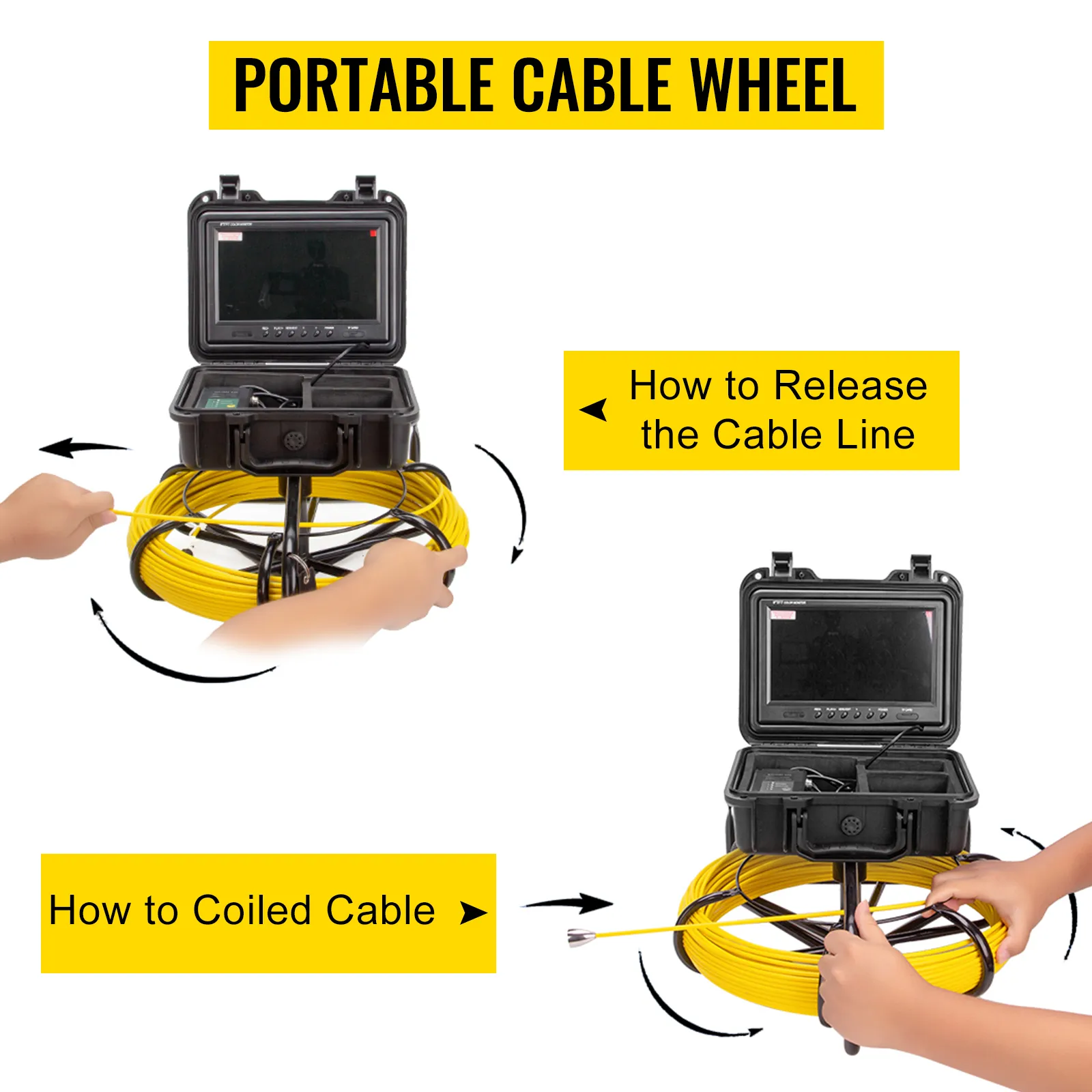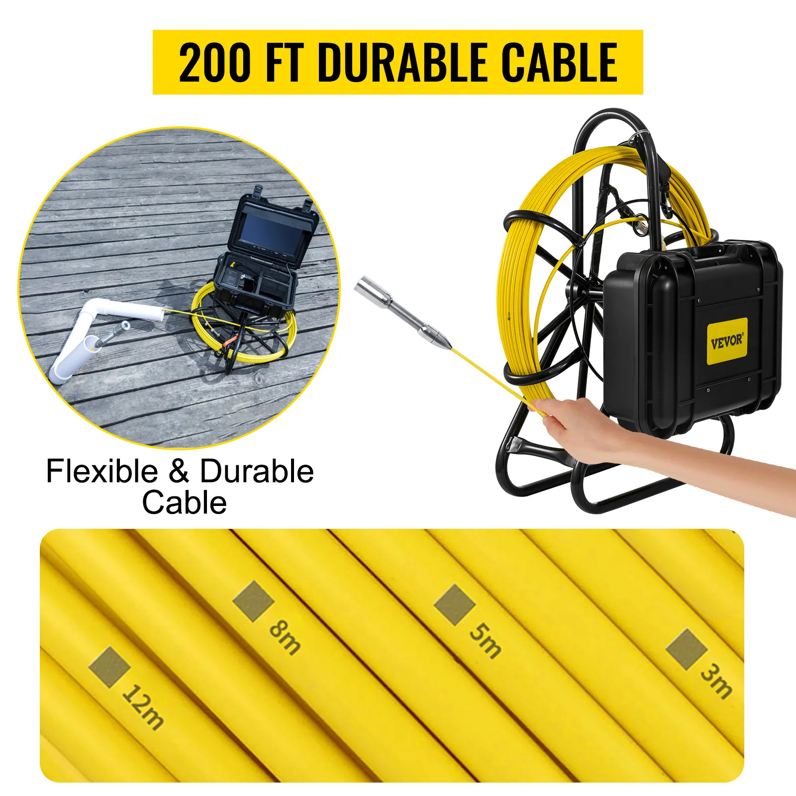 ¿Sabes lo difícil que es desenredar el cable del cargador de tu móvil? ¿Qué pasa si el cable de la cámara de alcantarillado también se enreda y se atasca mientras inspeccionas la tubería? Seguramente tendrás que dedicar demasiado tiempo a arreglarlo. Es una situación agotadora, ¿verdad? Pero no con la cámara de alcantarillado VEVOR, ya que cuenta con una rueda de cable.