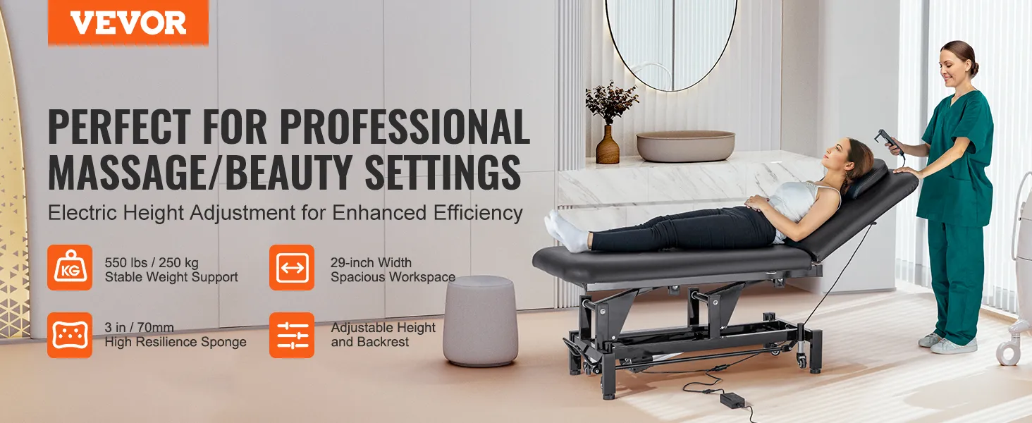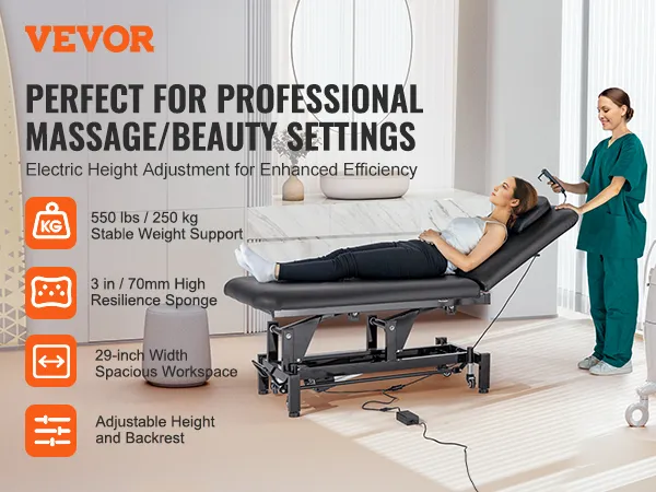 Experimente una relajación personalizada con la camilla de masaje eléctrica VEVOR, que ofrece un ajuste de altura flexible de 20" a 31,5" y un posicionamiento preciso del respaldo de 0 a 45 grados para una comodidad óptima. Construida para durar y fácil de mantener, nuestra camilla de masaje motorizada garantiza un rendimiento y comodidad duraderos.