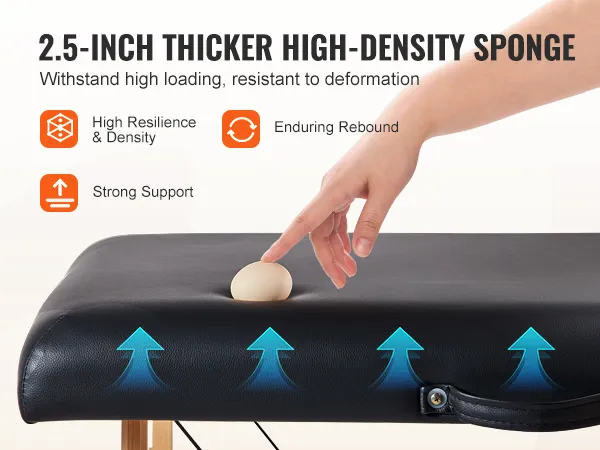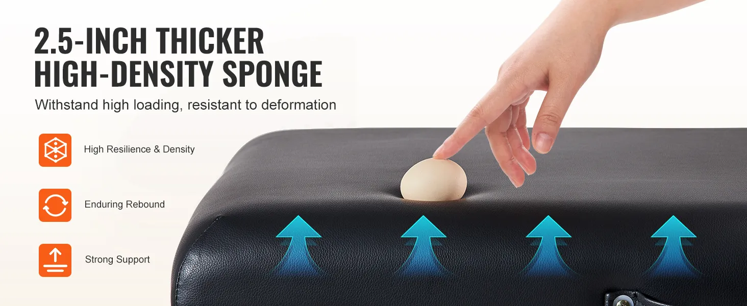 Nuestra esponja de 2,5 pulgadas meticulosamente elaborada garantiza una experiencia de masaje incomparable. Diseñada para ofrecer estabilidad bajo presión y resistencia a la deformación, la mesa plegable para tatuajes de belleza VEVOR ofrece un soporte firme con su resistencia de alta densidad y su rebote duradero.