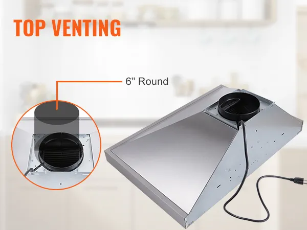 La instalación es fácil gracias a la guía clara proporcionada. Diseño de ventilación superior de tamaño de ventilación redondo de 6" para una ventilación y flujo de aire óptimos, ahorrando espacio en su cocina.
