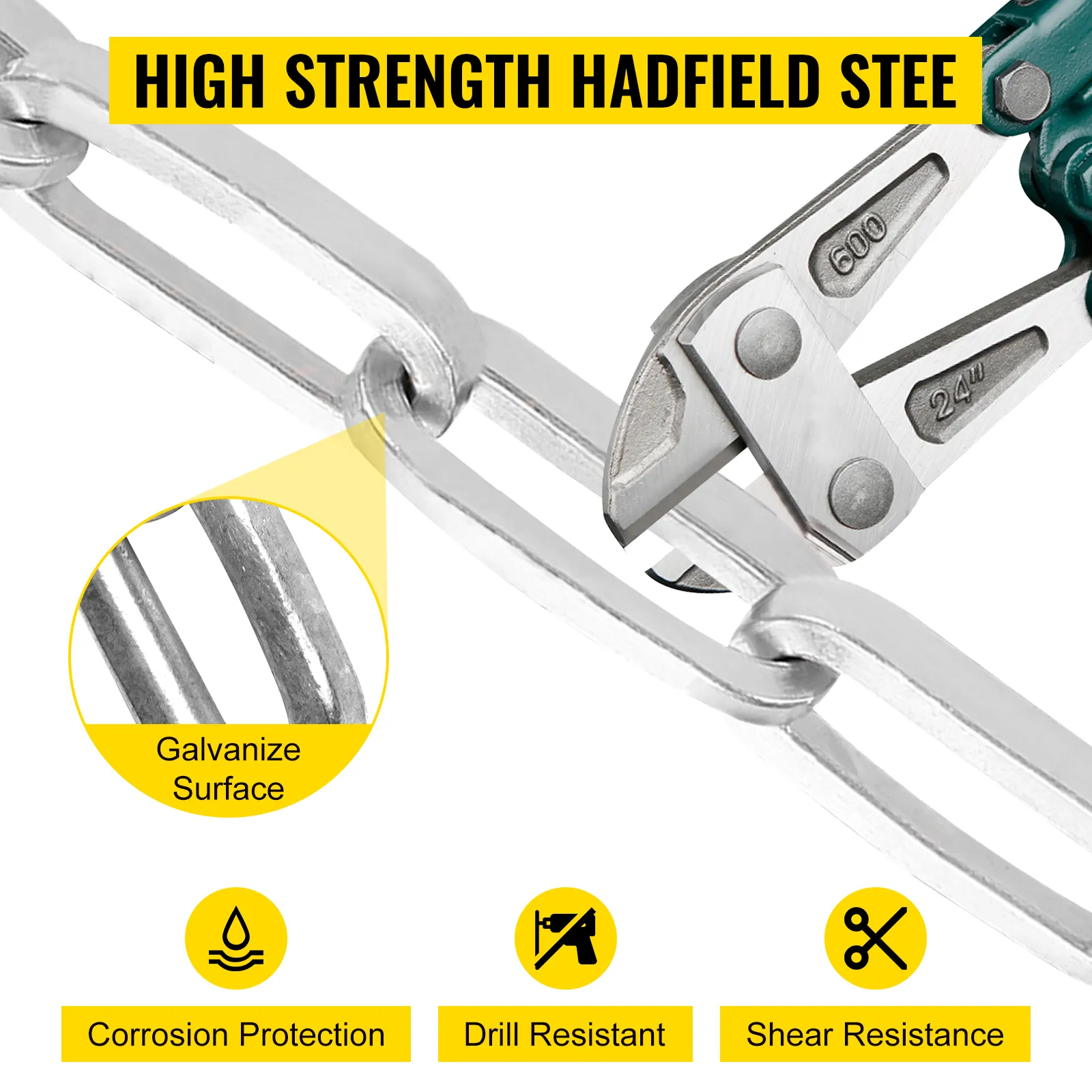 La relación del área de la sección transversal de una sección cuadrada a una sección circular y una sección hexagonal es de 78,5: 86: 100, por lo que la cadena de nuestro equipo imparcial tiene un área de sección transversal más extensa y no es fácil de cortar.
